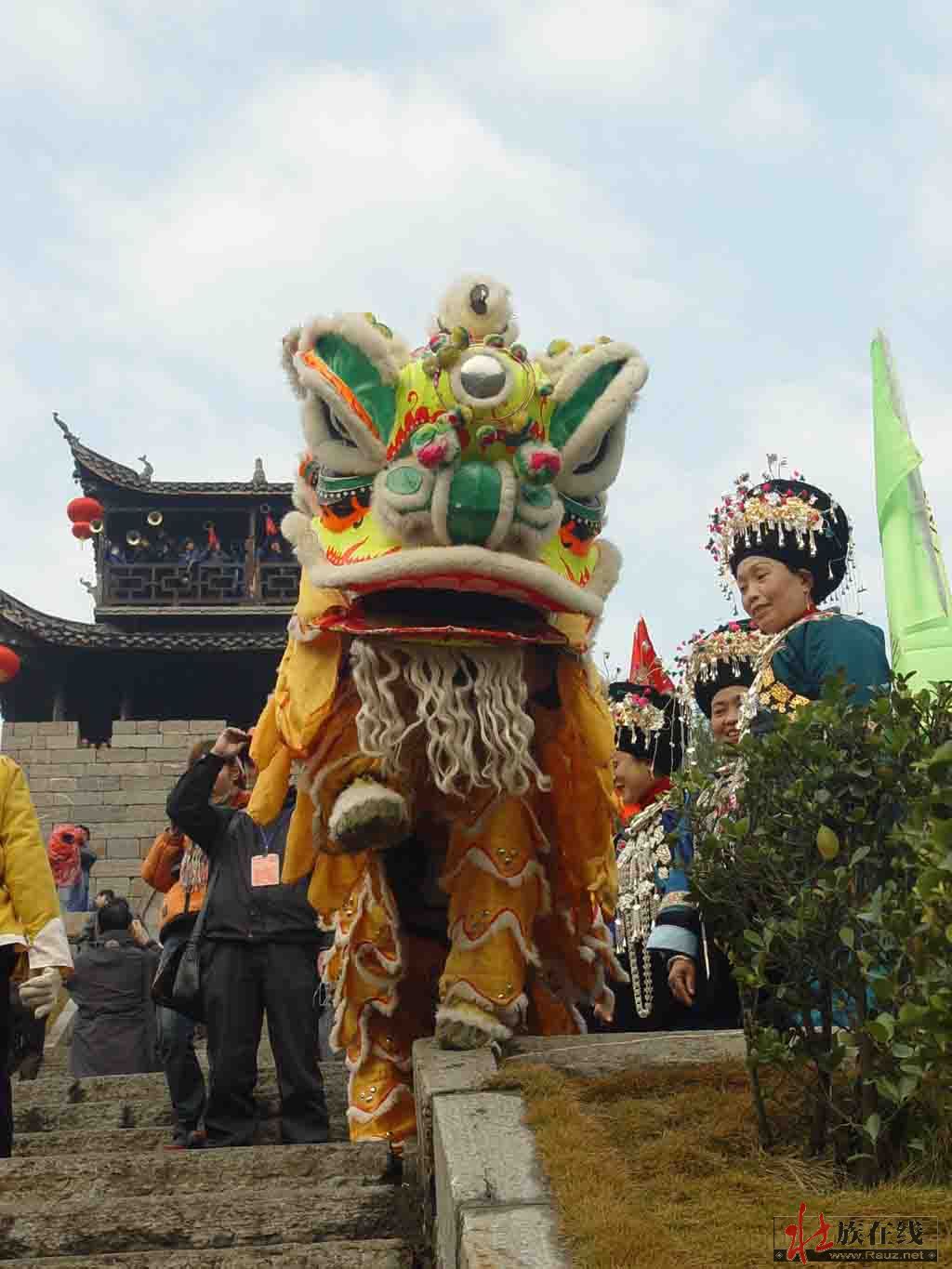 鞭炮声此起彼伏的氛围里,我不知道2006年的中央一台直播的春节联欢晚会是怎样的盛况,倒是对大年初一在耳边传来的阵阵牛角号声按捺不住想去瞧瞧的心。凤凰人过年,舞狮耍龙是免不了的习俗,三十晚在家里守岁,初一出门拜年,初二走亲访友,从年初三开始,乡下的狮子龙灯队伍就会进城来与城里的居民同乐。