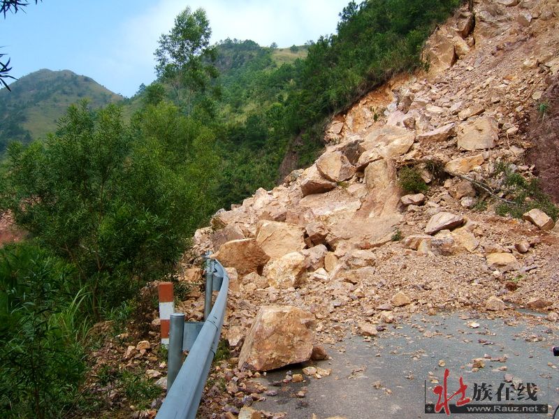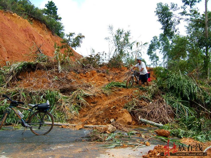 找了间旅社安顿下来后洗了个澡,人终于又精神了起来。但吃饭的时候我们听到了一个很不好的消息,小炒店的老板告诉我们,因为前两天的暴雨,从峒中到桐棉的道路已经全钱塌方了,根本无法通行,连人都走不过,更不用说车。路过镇政府的时候,见到里面灯还亮着,又跑到政府去问路况。但从镇政府值班人员那里得到的情况更糟糕,从峒中到山顶顺风坳全线塌方,当地人员去核实塌方的情况时,只有从小路上去,看完一处塌方后到沿小路到另一个塌方查看,还劝我们明天马上收拾东西打道回府。心有不甘的上网查询前方的路况,显然宁明县在这次台风中遭受了重创,那边的情况并不明朗,看来,修改骑行计划似乎已经不可避免。