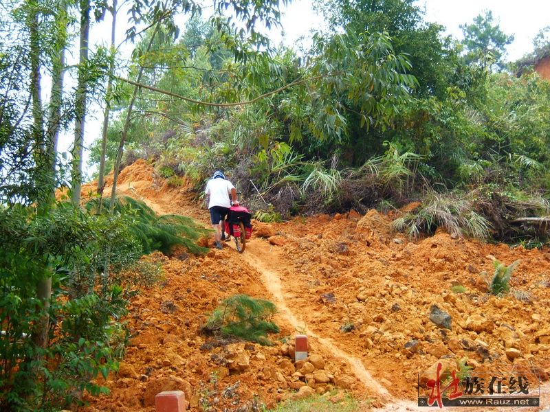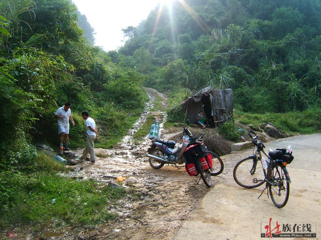 什么叫天无绝人之路,这次骑行终于体会到了。在峒中市场,我们从赶圩的人中了解到,在离顺风坳不远的山上的村子已经有人骑着摩托车来赶集了,摩托走得,单车走一得?于是当即决定走一趟,不管能不能过塌方,先走了再说。于是匆忙返回峒中(板典村),收拾了行李退好房,在街上吃了一碗粉便上又开始踏上征程。