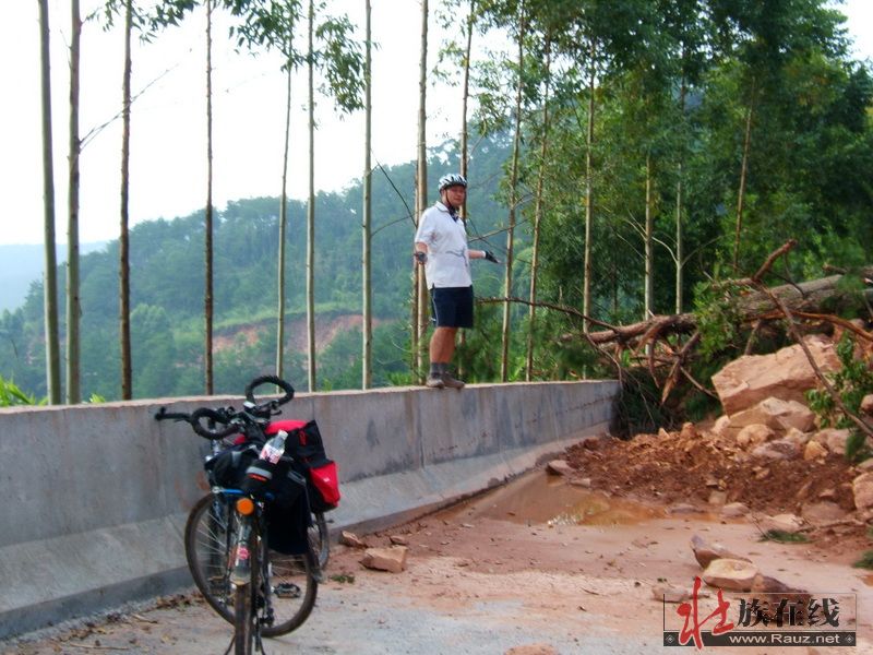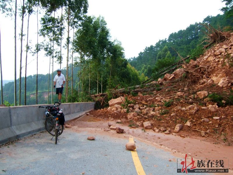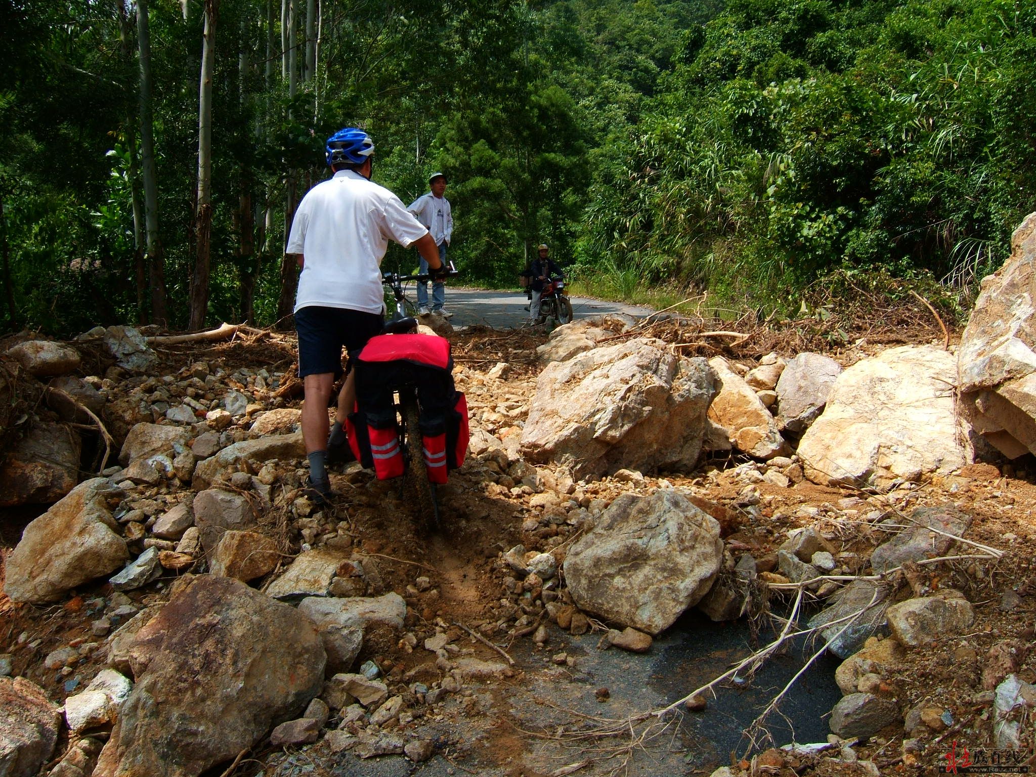 我们是数着塌方一路骑上坡去的,从坡底到顺风坳,盖过路面的塌方一共有三十六处,有从山上冲下的泥石流塌方,也有路边塌下的石方,小塌方更是不计其数。