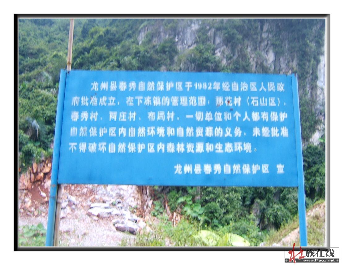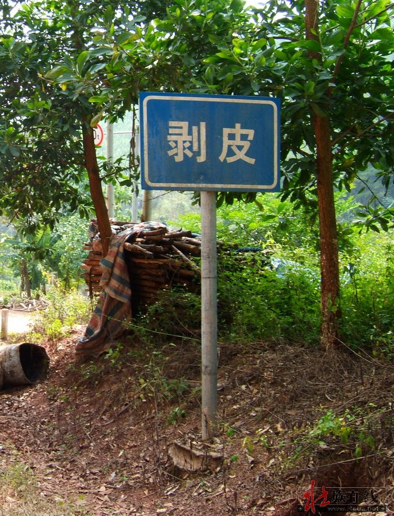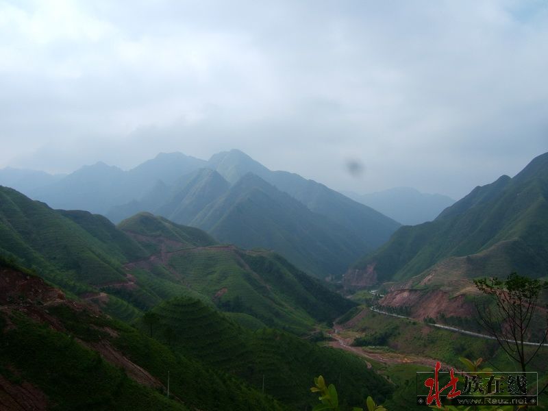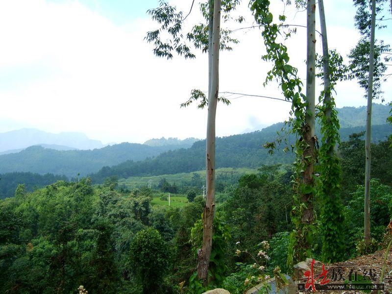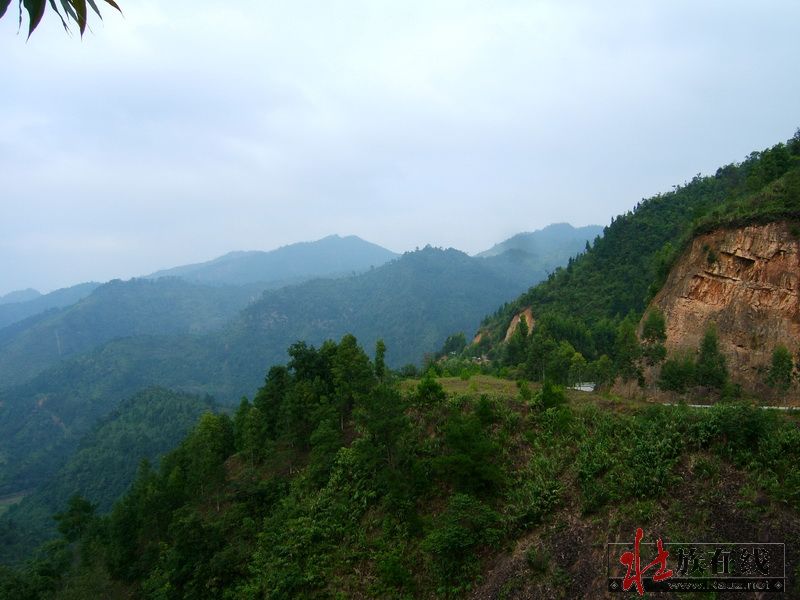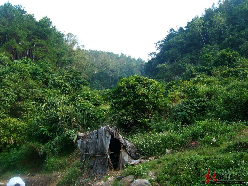 从波曼村下坡6公里再上2.5公里的坡,再下1公里坡至念井(653.5公里标)。念井位于白云山脚下,有山脊与大青山相连,紧临白云山原始林区,海拔约800多米,其北部是一个呈V字型的大峡谷。念井是一个边民贸易点,有班车至经北斗、百合至百南和那坡县城。我们到达那坡时已经是下午6点,当天正好是念井的圩日,当时刚好有一趟未班车到百南。在念井休息了几分钟,吃了点饼干和水,继续上路。出圩口的时候,在路边看到了一块“虎跳峡保护区”的示意牌,当时没拍下来,不过在第二天的行程中还会遇到^-^。