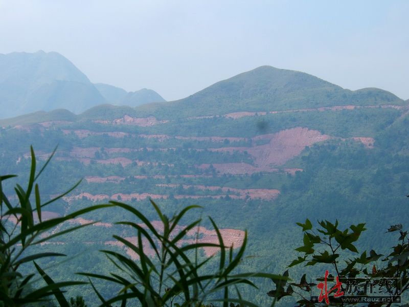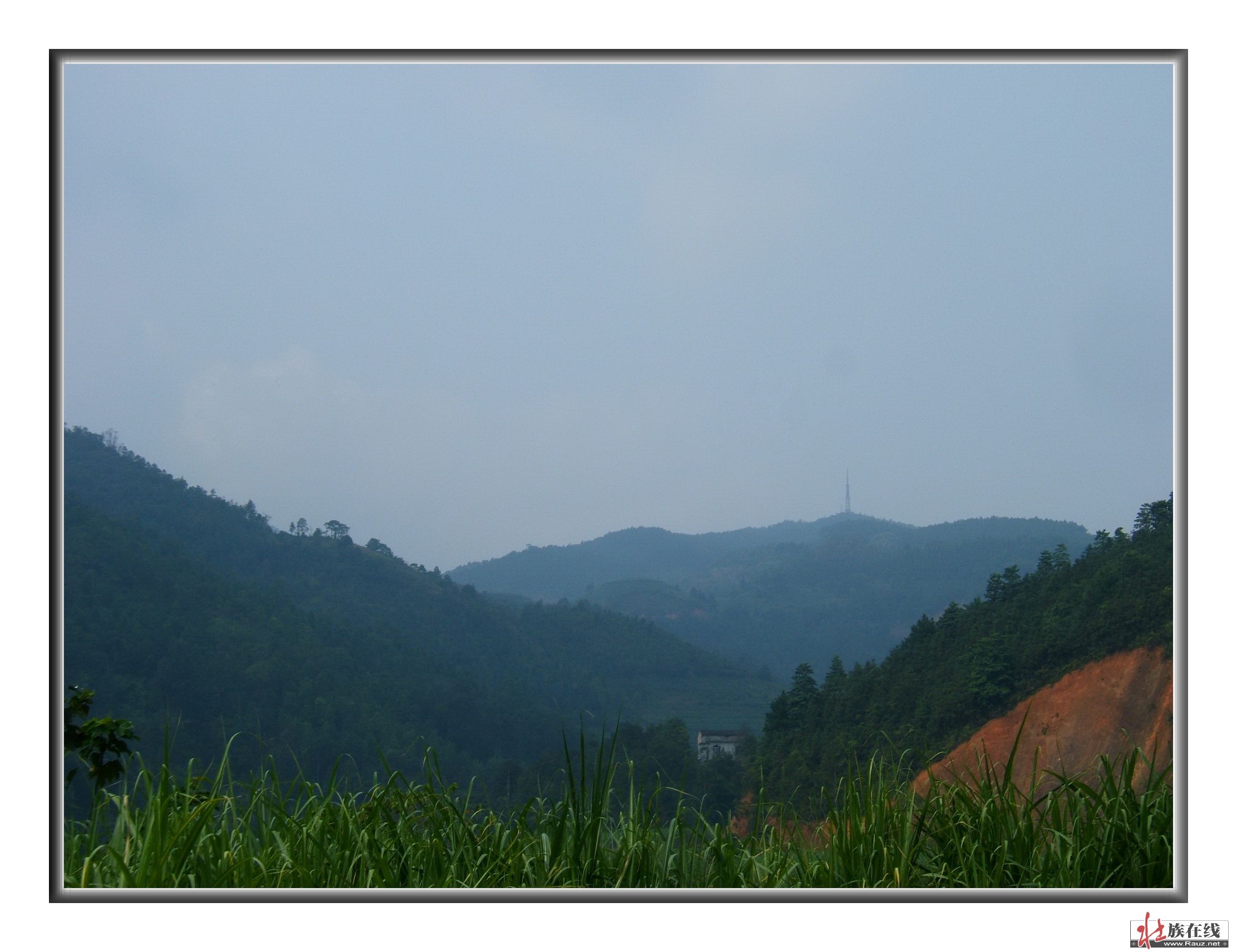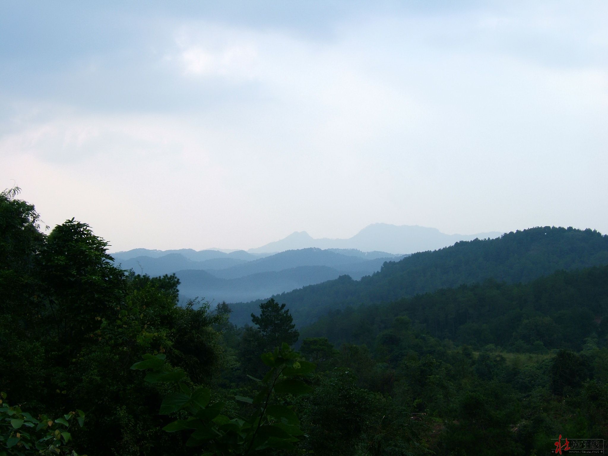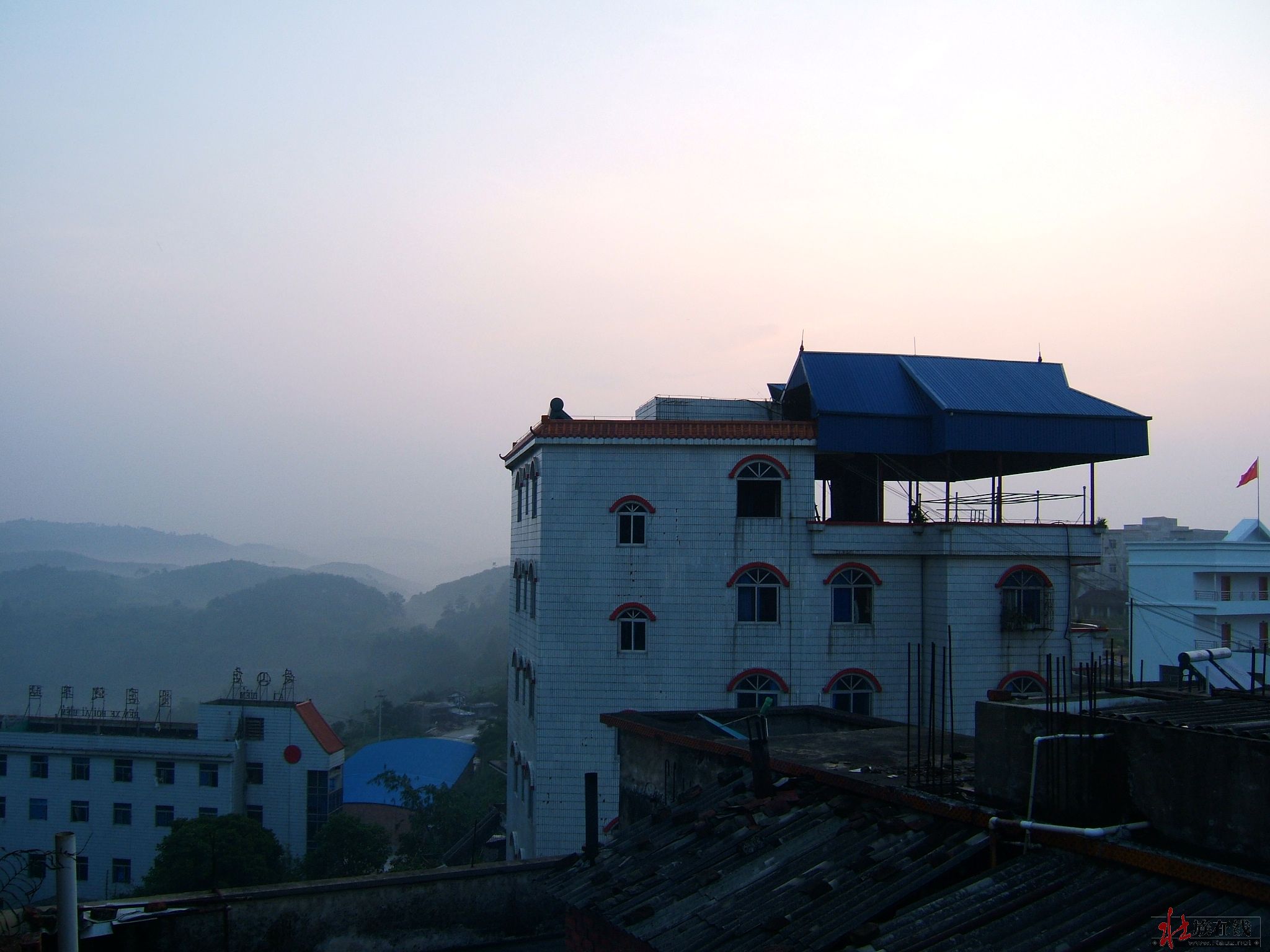 吃完粉,回旅社收拾行李,顺便在楼顶照了几张峒中的景色。这张是我们即将要翻越的顺风坳所在的两座大山中的前面一座,依稀可以见到山上的塌方。