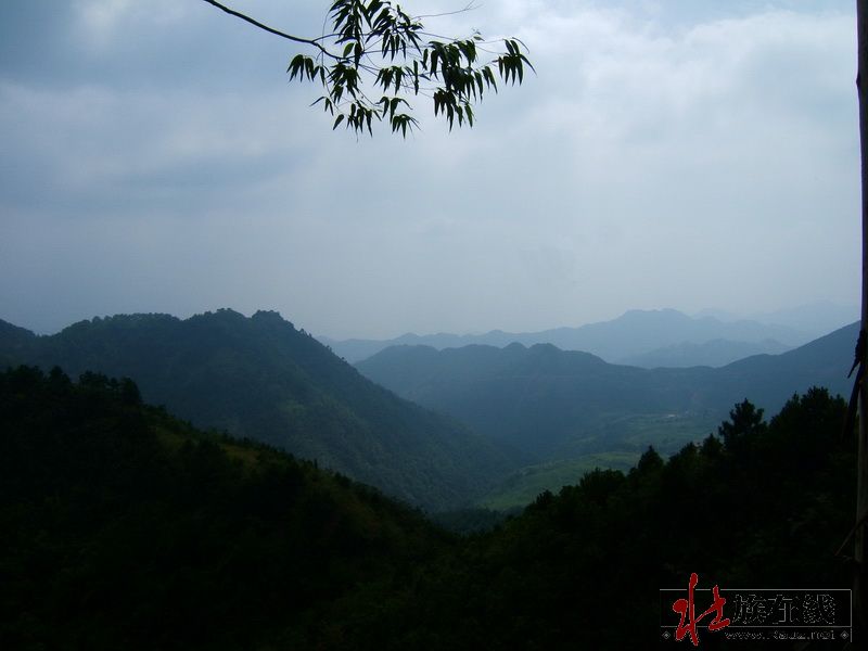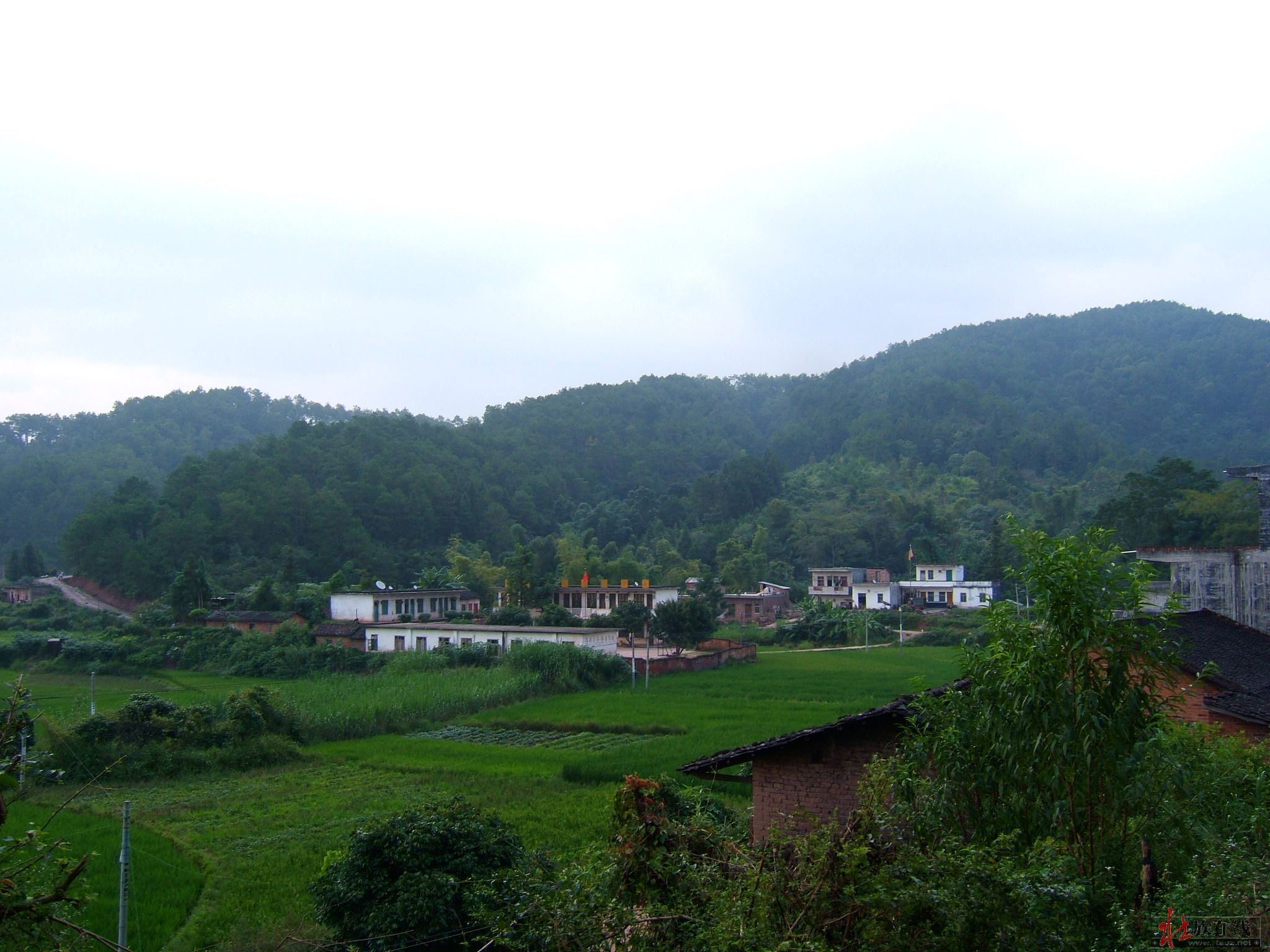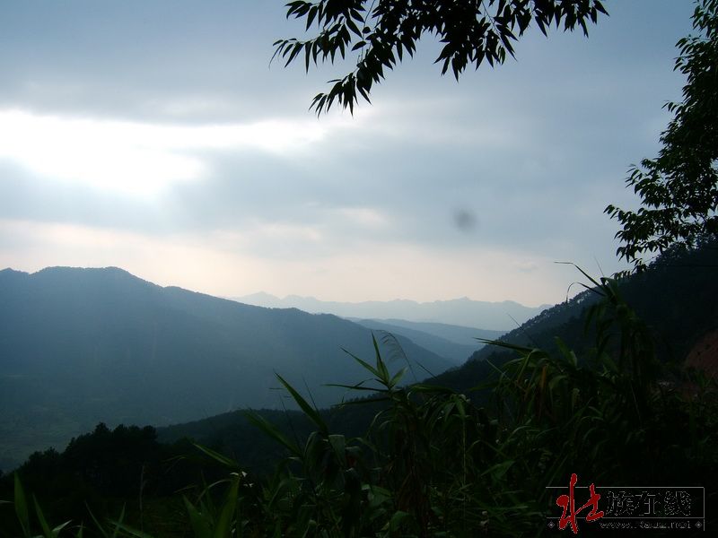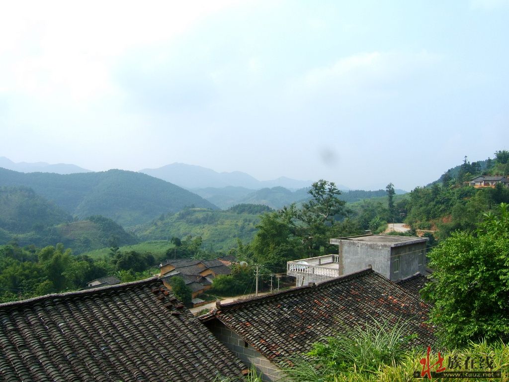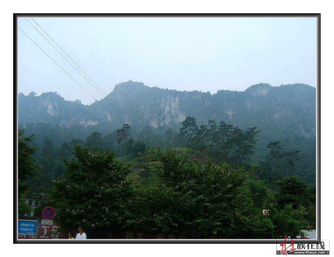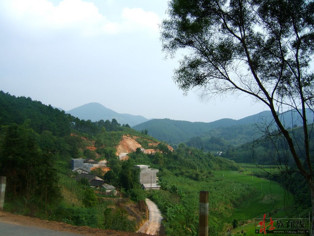 吃完粉,回旅社收拾行李,顺便在楼顶照了几张峒中的景色。这张是我们即将要翻越的顺风坳所在的两座大山中的前面一座,依稀可以见到山上的塌方。