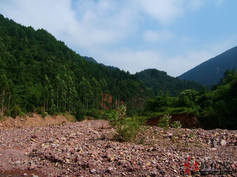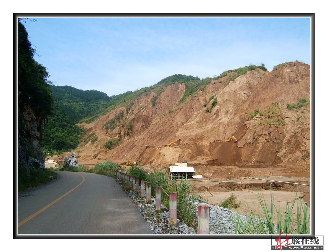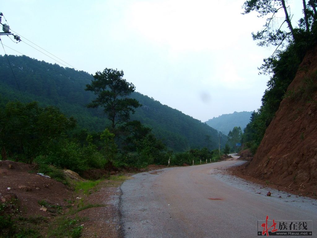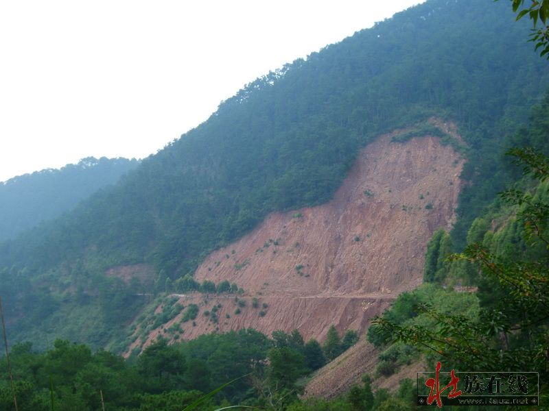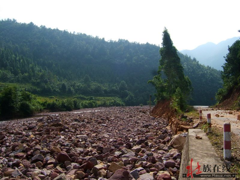 坡顶的路口,向右走为去下雷的砂石路,这里也塌方了。