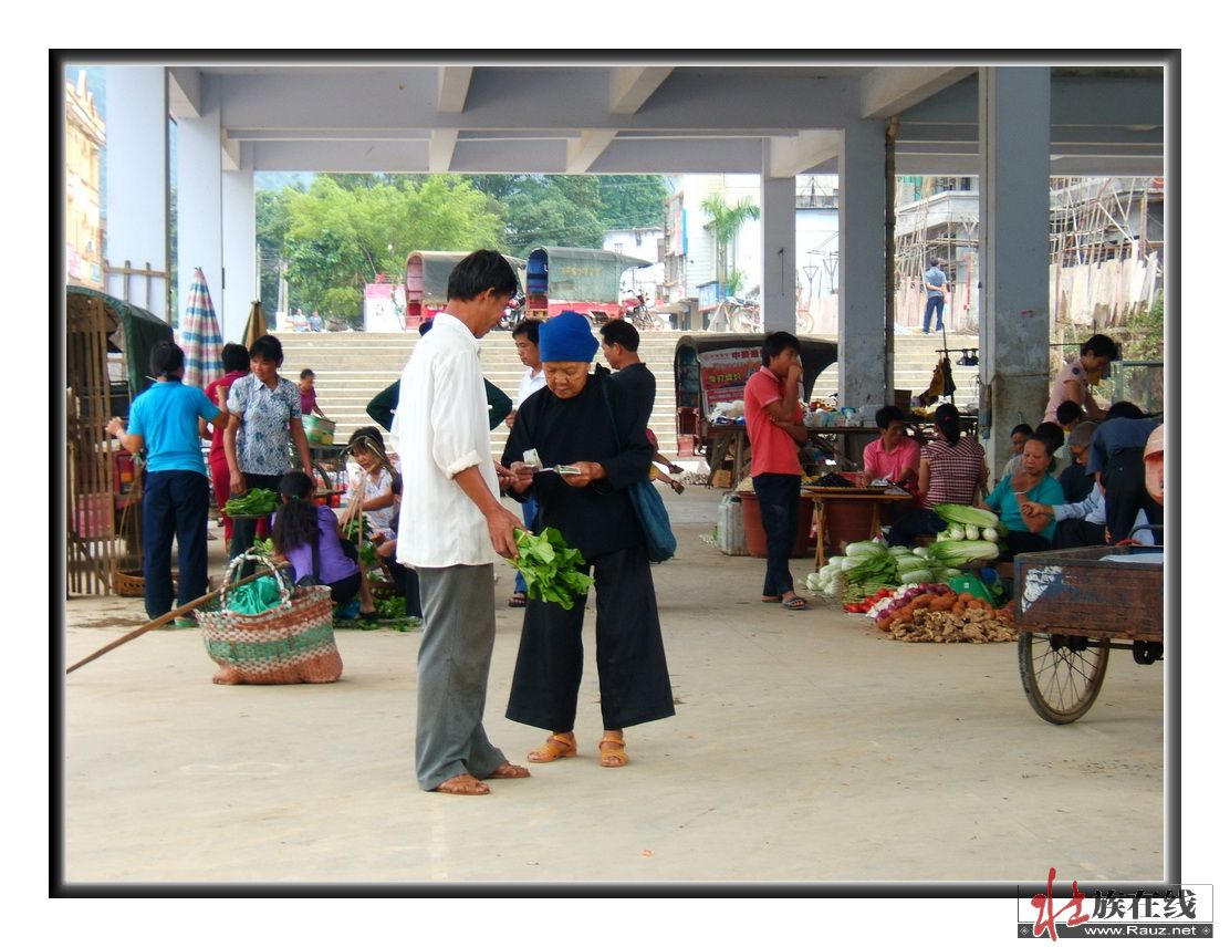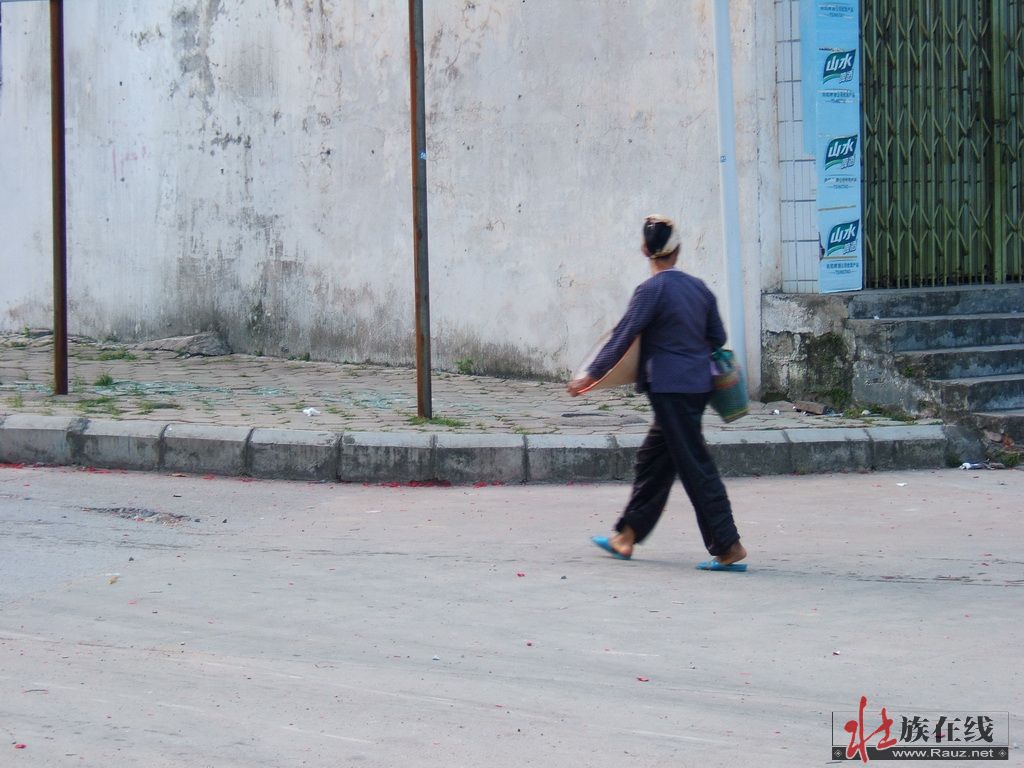 在市场外摆摊的婆婆,看她们的装饰,应该是僚人吧