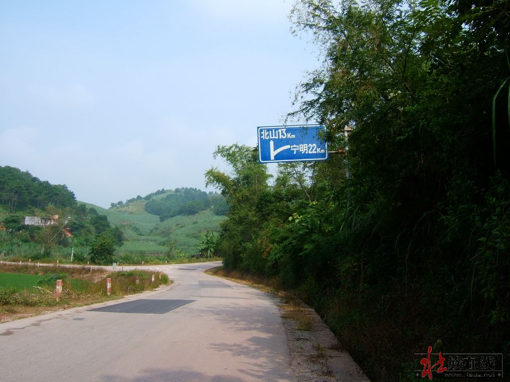从念进下坡3.5公里到百南(19km)-北斗(11km)路口(657.3公里标),再上陡坡至662公里标至白云山坡顶,平骑约1公里下坡,下坡很急路很弯,至673公里标到坡底的百南河边,再沿百南河往上游平骑4公里到百南镇。