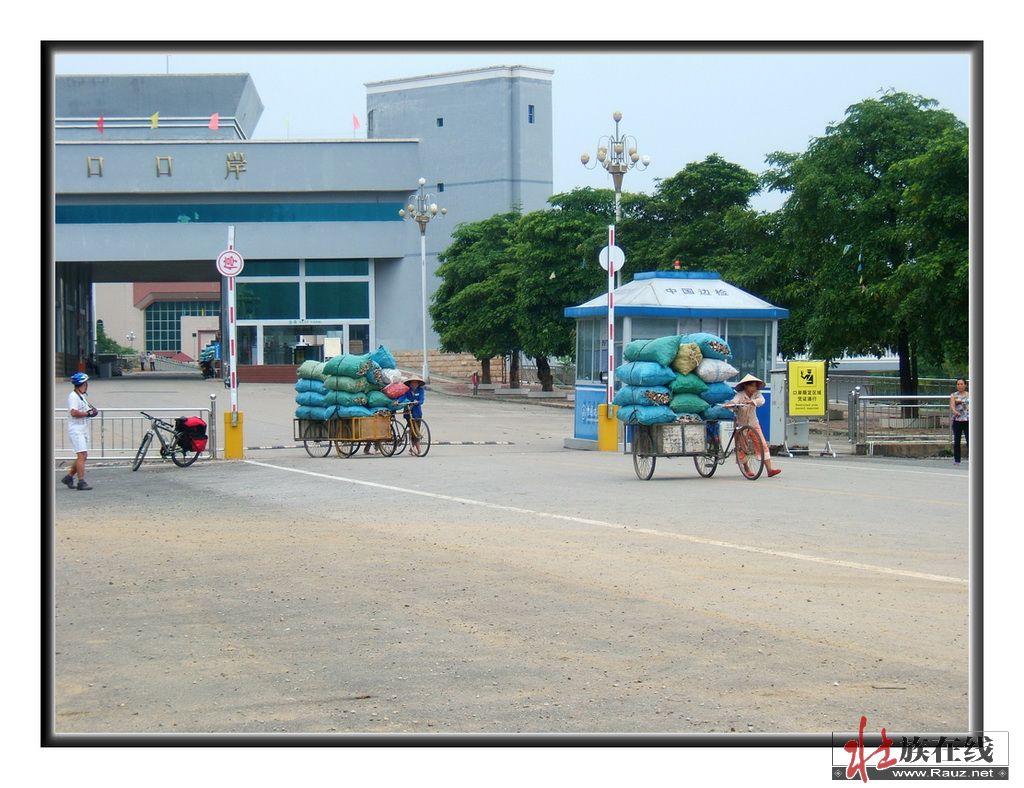 是上依然繁忙的北仑河码头(可惜光线不好,照得不怎么清楚),桥的对岸即是越南。