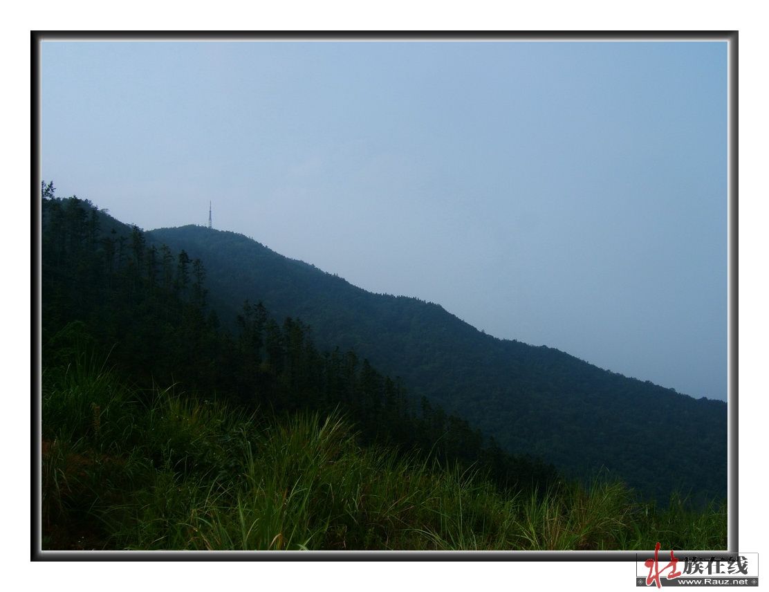二坡也快到顶了,回望一坡。在一近坡顶处有一个巨大的通讯塔和一个兵营,我们原以为到了铁塔处就到顶了,哪知道还有现在的高度已经大大高出铁塔的位置了。