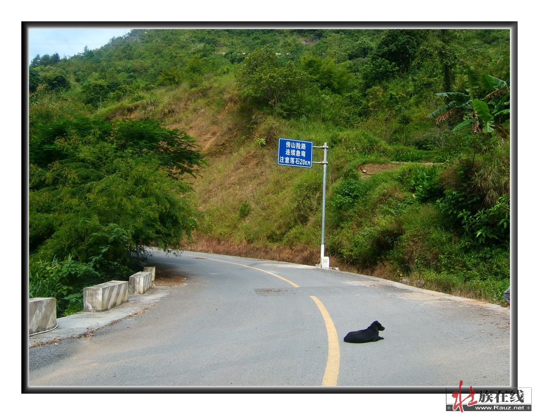 果布村后的路边坡底处有一个出水岩洞,是前面一直伴随我们的小河的源头,从源头起,又是漫长的上坡路段,坡长4.5公里。
