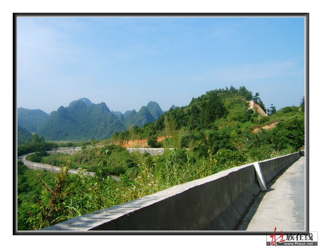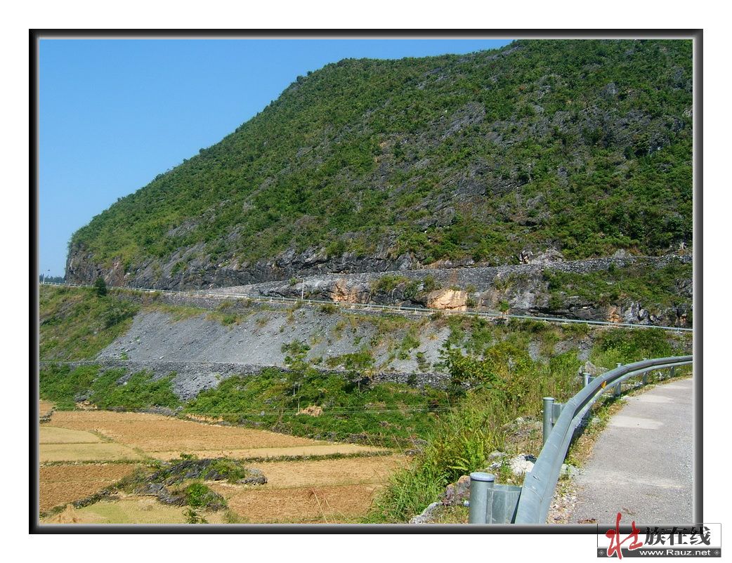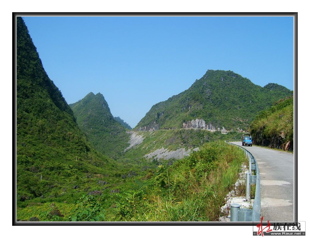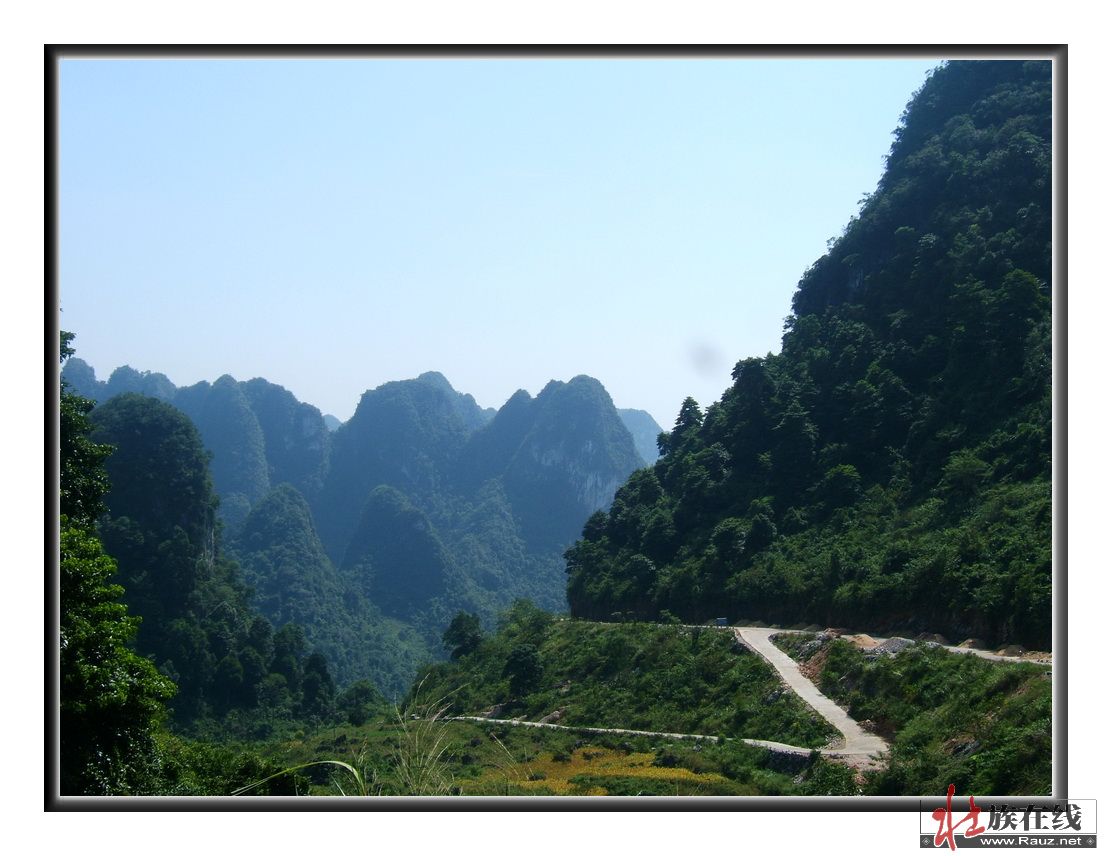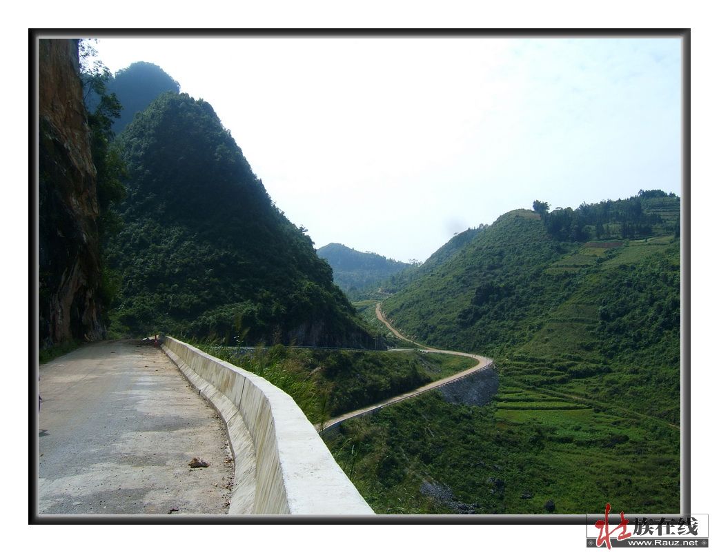 从德天上到坡顶(475.5公里标)后,沿边路便在悬崖边上不断上下盘旋延伸。这是一个处于石山峰丛间一小块封闭的洼地里的一个小村落。缺水、缺地,沿边路修通之前,这里应该极为闭塞。