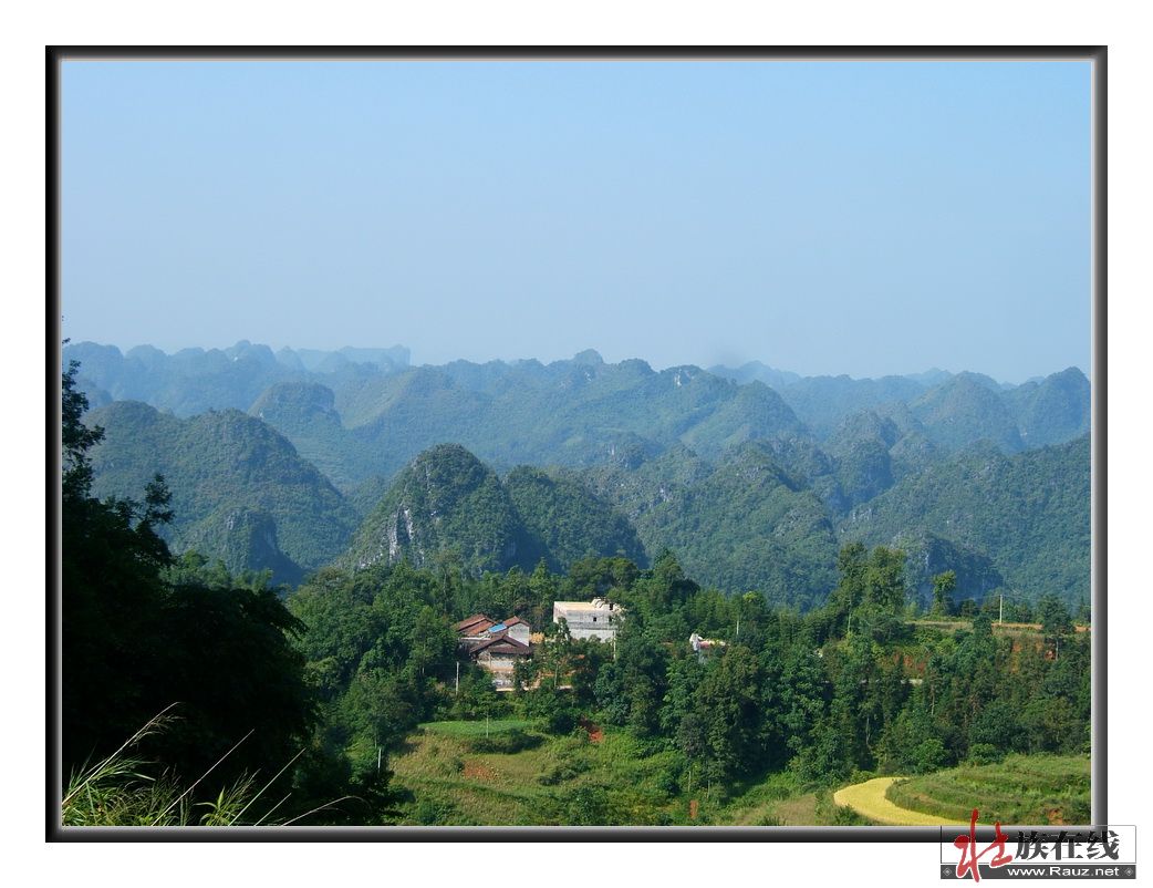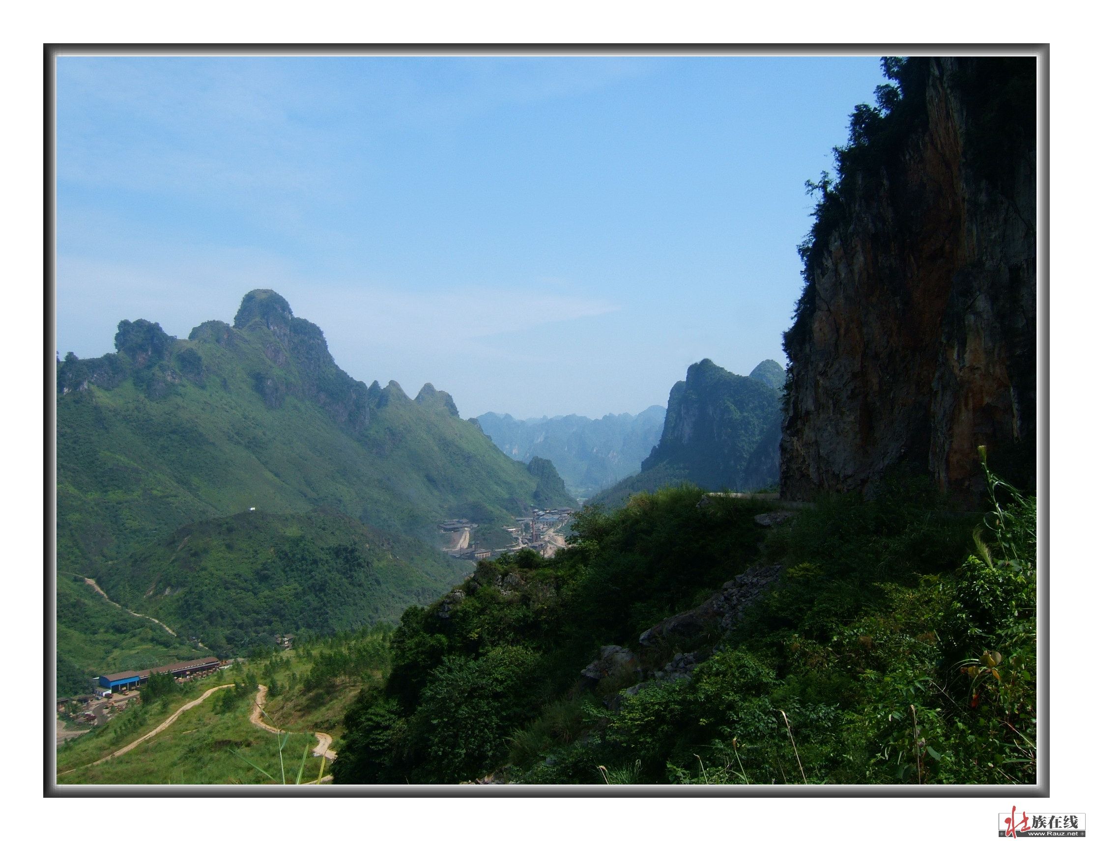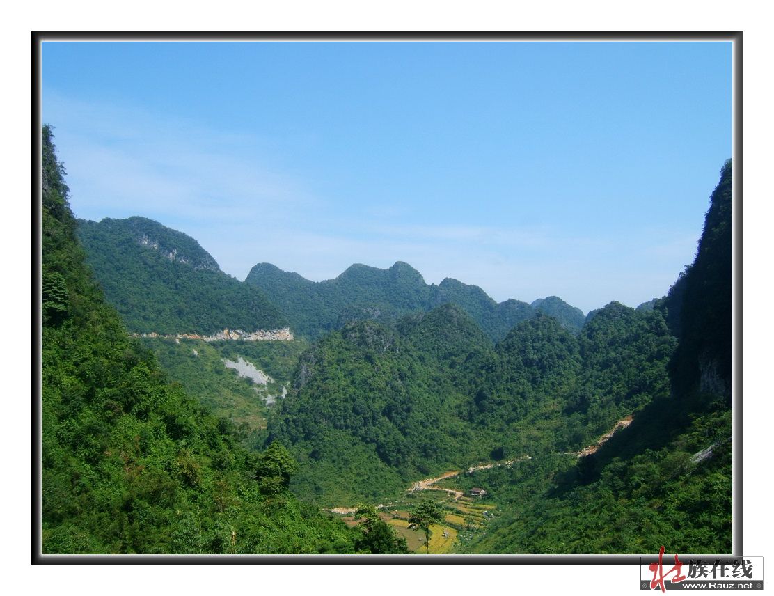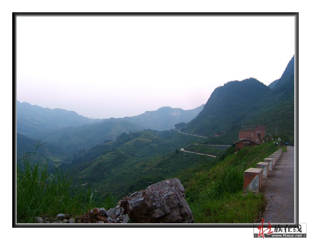 从德天上到坡顶(475.5公里标)后,沿边路便在悬崖边上不断上下盘旋延伸。这是一个处于石山峰丛间一小块封闭的洼地里的一个小村落。缺水、缺地,沿边路修通之前,这里应该极为闭塞。