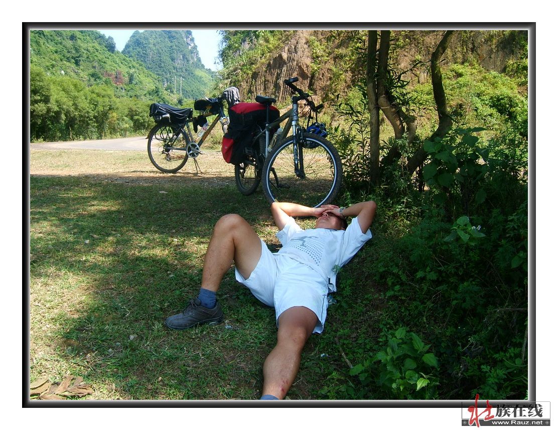 从新兴街出来,过一个兵营,上一个小坡,实在累极了,连续几天的骑行,体力已经到了最困难的阶段,于是在路边的草地上睡起觉了,顺便晒一下昨晚洗换的衣物。这一睡就睡到了两点多钟,