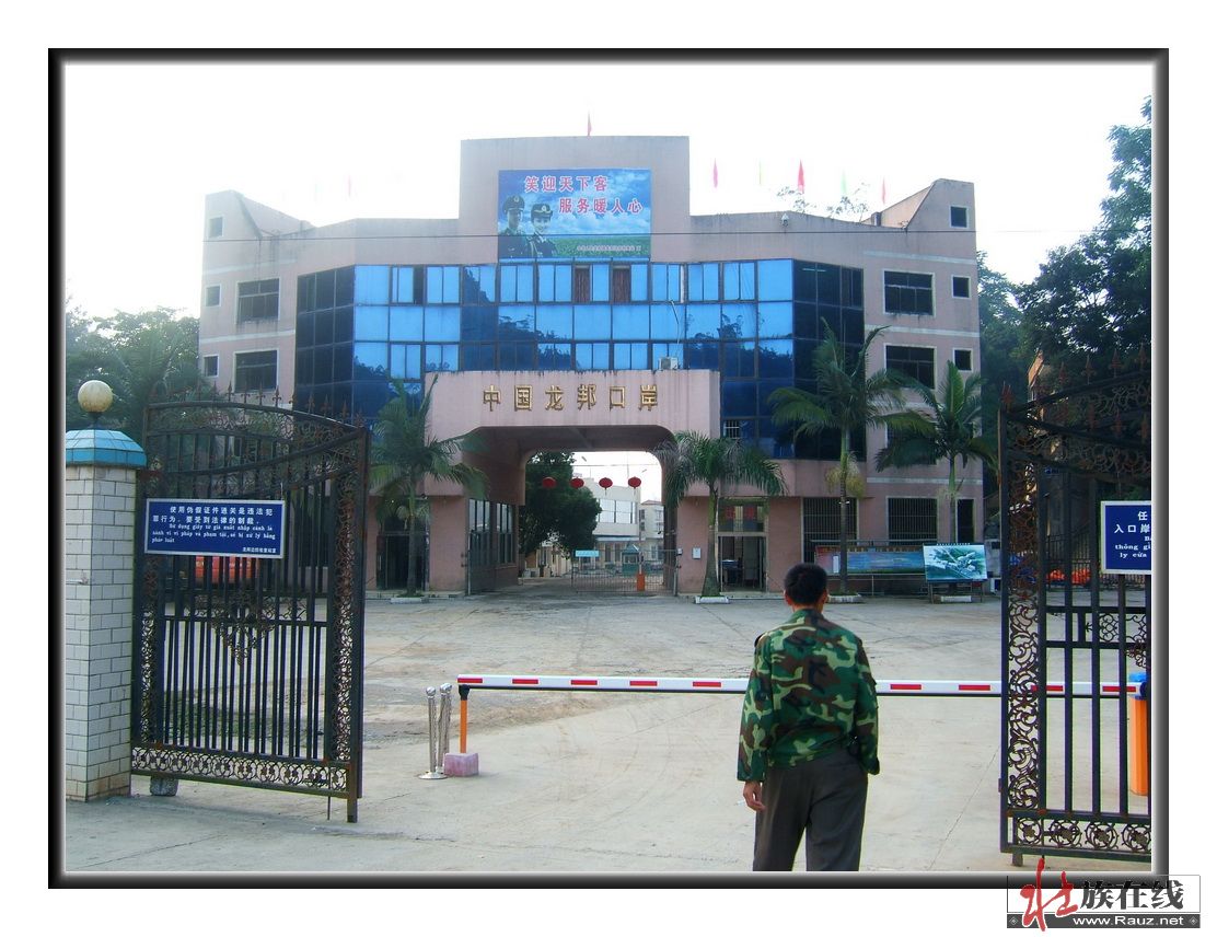 龙邦口岸位于一道狭窄的山谷间,从靖西-龙邦公路与沿边公路的岔路口下一个2公里的陡坡即到。口岸距龙邦镇有3公里,是国家一类口岸,年贸易额在3亿元人民币以上,主要贸易产品是铁矿和锰矿。