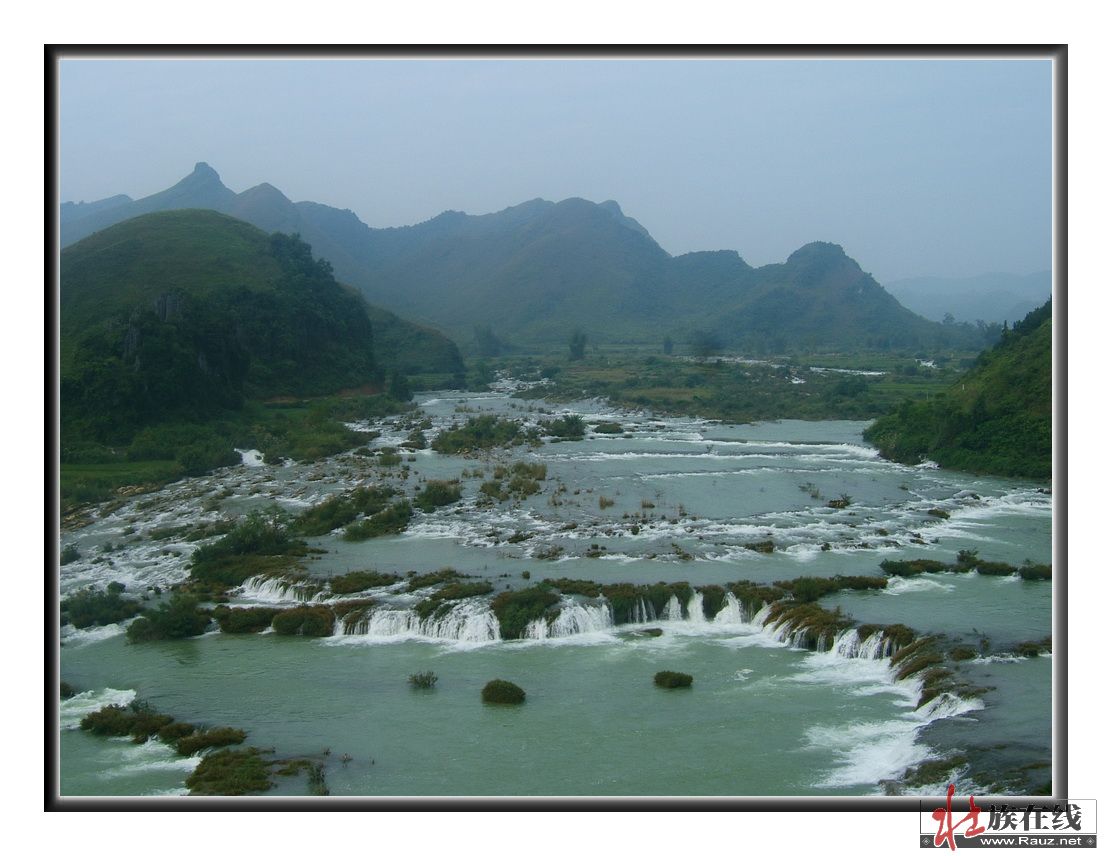 因为要80块大洋/人的门票,而且我又去过,所以我们没有进到景区里面。有当地人说可以带我们从越南那边进到景区里,只要门票一半的价钱,想想还是算了。金秀的车友试图从下游的河边拍些瀑布的景色,据他说,只拍到了越南那边的那条小瀑布。