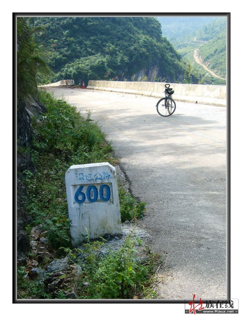 10月7日,晴,行程:龙邦口岸(549公里标)-百南(677公里标),全程128公里。这段路是整个沿边路中骑行强度最大的路段,一是路程长,二是坡多且陡。全程按骑行路况及地貌基本可以分为三段:第一段是从龙邦至果布村(578公里标),主要以平路为主,整个行程都在一条小河谷中穿行。第二段是从果布村到平孟(625公里标),道路盘旋于高寒大石山区,多上下坡。第三段是平孟至百南(677公里标),要翻越两座高山,坡顶的海拔均在千米以上,因此此段又可分为两段路程:1是从平孟至念井(653.5公里标),翻越的大山称为大青山,是一座土山,坡长18公里(625.5-643.9);2是从念井至百南,翻越一座大石山白云山,坡长约5公里(因为天黑,所以没有看到里标),而且较大青山坡更陡更险。