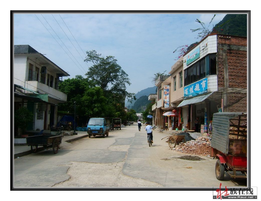 圩日是农历258,在圩日时有两摊粉卖,平时连一摊都没有,不过这里倒有个边防派出所。在街上的商店里吃了一盒快餐面和几个饼干,补充了矿泉水,却不心把一本地图给忘记在这里了。看店的小伙是柳城的,本身是壮族人,会讲壮话,来这里帮朋友做事的。和我们交谈的时候,他把本地人称为少数民族,却忘记了自己的壮族身份。