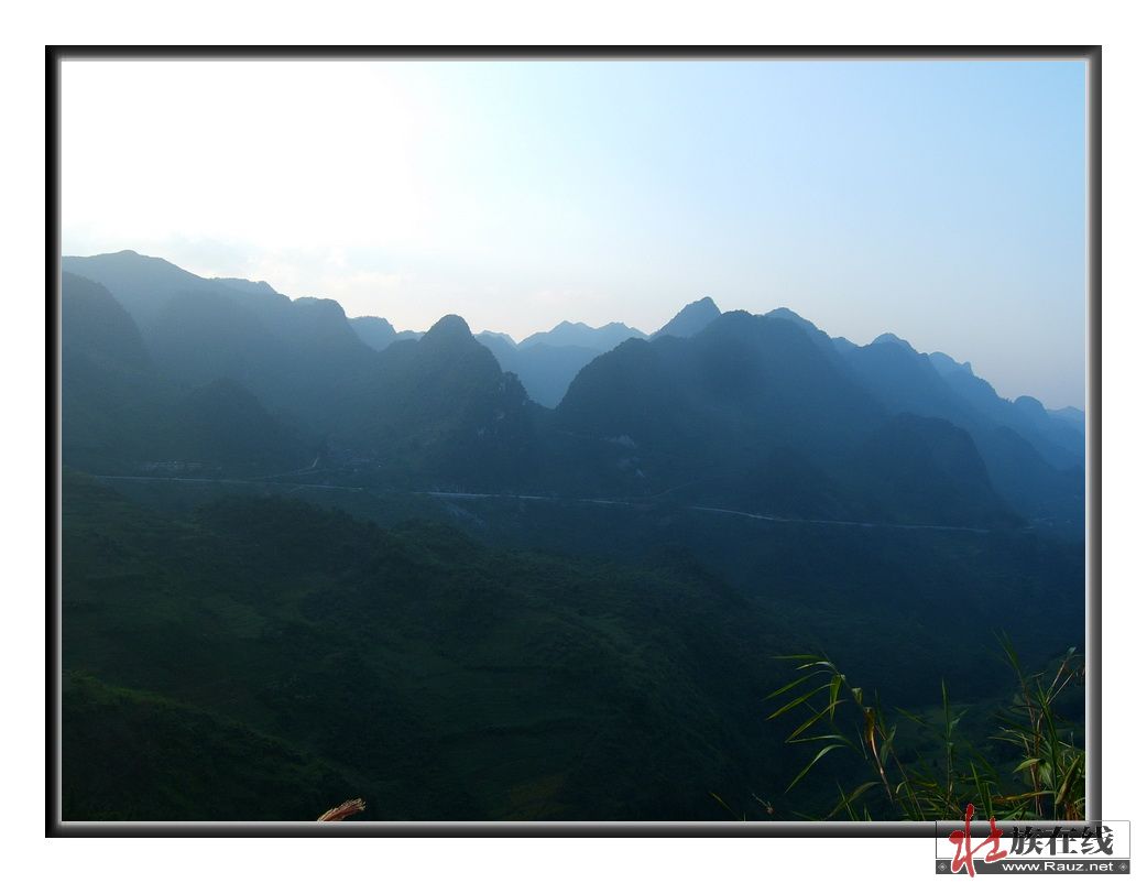 从资料上知道,德天至龙邦的风景是沿边路上最美丽的,因为怕在路上拍照会耽误一些时间,所以我们起得很早,在太阳还没出来的时候已经到了“绿岛行云”景区(263.9公里标)