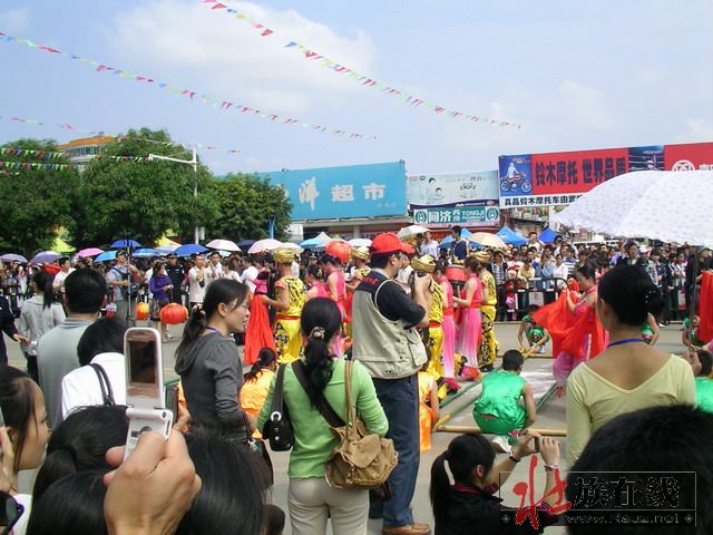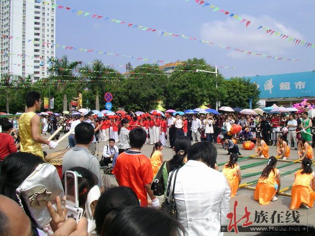 千人竹竿舞的观众太多,开场之后我听到广播声、锣鼓声,看不清热闹的场面,干脆挤出了外三层,打算去欣赏山歌对唱