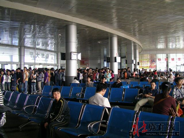 3月29日,农历三月初三,2009年中国壮乡.武鸣三月三歌圩如期举行,我按计划在早上八点以前来到南宁市安吉客运站。客运站的人越来越多,我排队买票5分钟,排队进站10分钟,但进站的旅客太多了,秩序有些失控,我进站之后过了15分钟才得以登上其中一部班车,然后一车跟着一车慢悠悠出站,又过去15分钟才离开车站范围。出站时我看到,旅客排队买票、排队进站已经排到了车站外的广场上,比我刚进站的时候壮观了许多。观察了一下,车站外的旅客跟候车室里的旅客一样,超过一半是学生模样的年轻人。