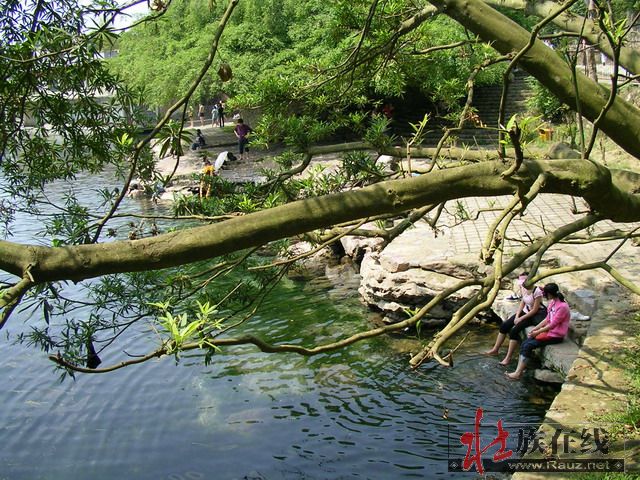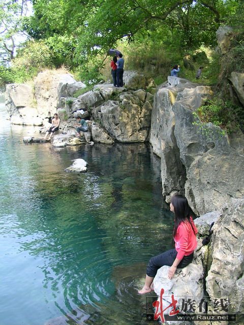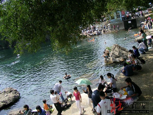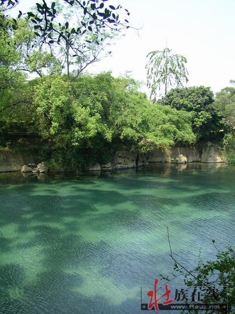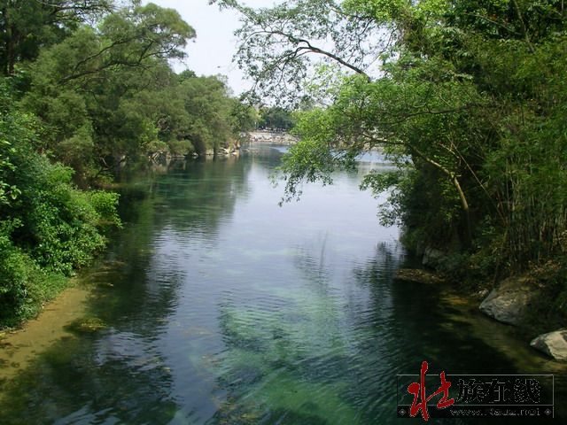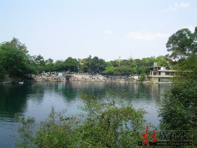 我们先逛灵水景区,逆时针沿岸行走,先到了出水口,外面就是武鸣河了,二水汇流成双色——“金银窝”即是此处。