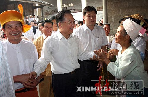 3月31日至4月1日,中共中央政治局常委、国务院总理温家宝在云南省德宏傣族景颇族自治州先后考察走访了傣族、景颇族、德昂族三个少数民族村寨。3月31日,温家宝在拉老村看望村民。离开时,一位傣族老大娘拉着他的手说,总理,您要记着再来傣家做客。 新华社记者姚大伟摄