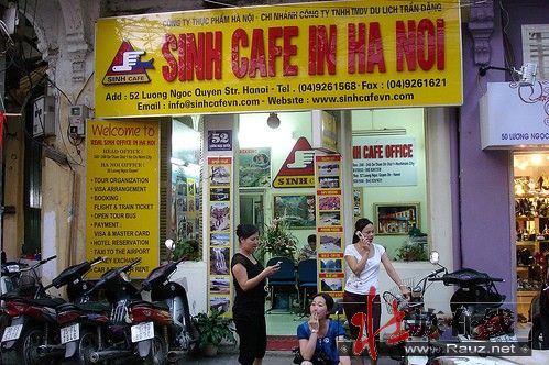 下图是河内sinh cafe在老街区的正版店面,由于河内有大量仿冒的sinh cafe(连招牌都完全一样),所以千万要认准招牌上的地址,只有地址不会有假.