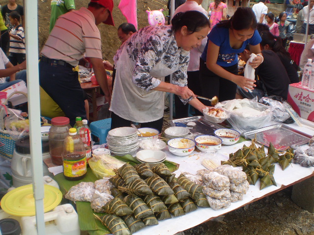 一对对彝族恋人通过歌声传情,最终走进婚姻的殿堂,结成夫妻。说到彝家人的婚礼,最特别的要数新郎和新娘家都要用心制作的“婚礼粑粑”。按照隆林彝族的风俗,新郎到新娘家迎亲,必须要带上精心制作的大糍粑,而新娘家为新娘陪嫁的嫁妆里,也必须要有一个大糍粑。
