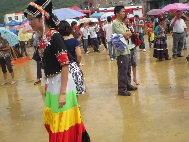 节日里,最兴奋、最激动的,要数那些英俊的阿哥和美丽的阿妹。那些平时就很漂亮的彝族姑娘,个个从头到脚都穿戴一新,美丽的百褶裙把姑娘们衬托得有如从山间云彩中飘来的仙女一般。面对漂亮的姑娘,彝族小阿哥们自有吸引意中人的办法。他们在摔跤场上,与其他阿哥斗力;在赛马场上,在斗牛、斗羊的大战中,大出风头显威风,让人群中的小阿妹们注意自己。