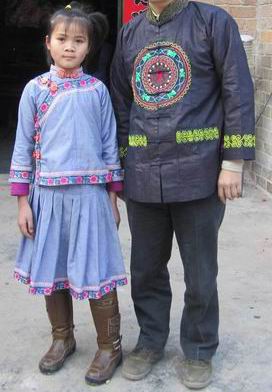一般:领子绣雷纹,手袖和口袋绣云纹,胸纹铜鼓,铜鼓上纹太阳纹、青蛙等。