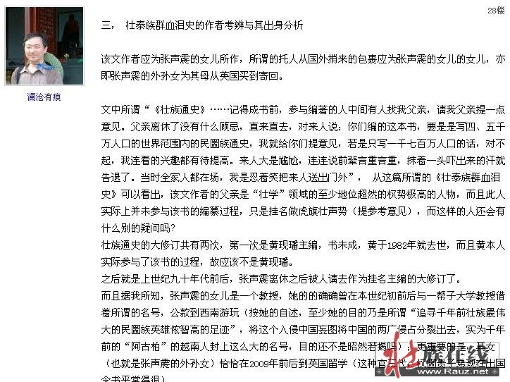他在广西吧又注册新马甲了,"为我八桂",今晚上百度广西吧看了看,突然发现又冒出了几十个新贴,都是他发的,反反复复在攻击壮学学者