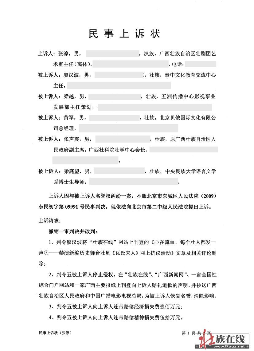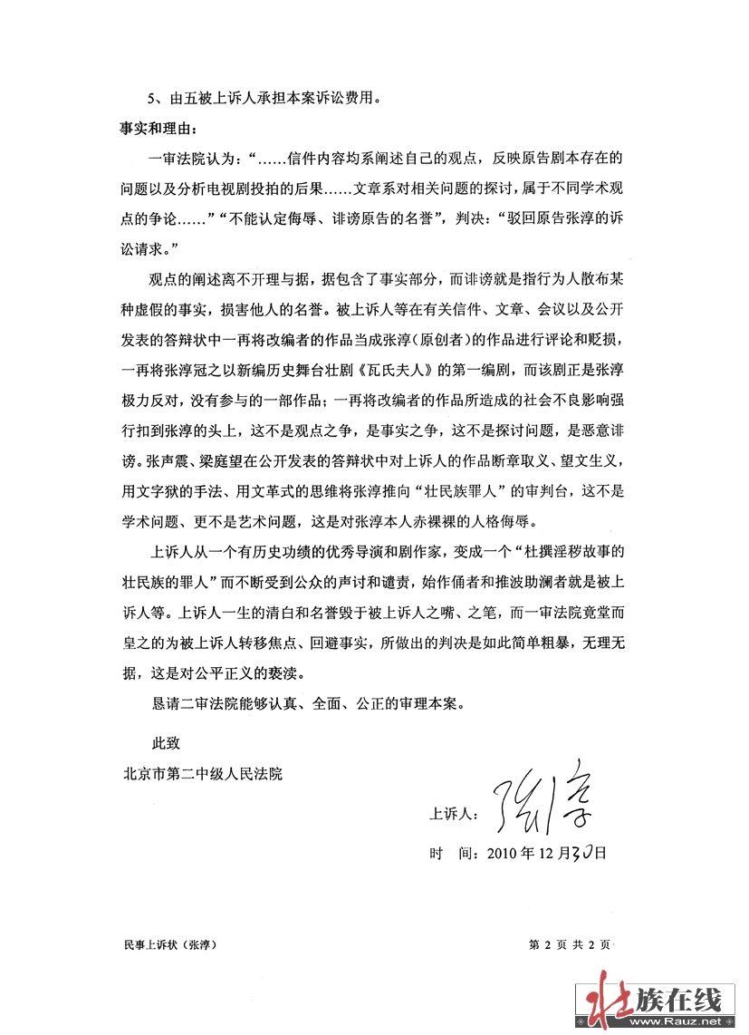 张淳不服名誉纠纷案一审判决,依法提起上诉 |