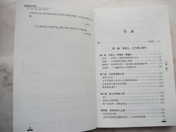 梁越的《勋一位耀武上将军两广巡阅使——陆荣廷评传》是一部具有开创性的著作。以往我们对军阀往往一概否定,缺乏对其一人一事做具体客观分析的视角,这是不符合辩证唯物主义的。军阀有两种解释,一是拥有武装部队,割据一方,自成派系的集团;二是泛制指控制政治的反动军人。前一种不能一概否定,对其一人一事必须做具体分析;后者则必须断然否定。这后一种以袁世凯为代表,前者有李宗仁、张学良、陆荣廷、龙云等等。具体到陆荣廷,历来对他的评价是有分歧的。实际上,陆荣廷是壮族的一位时代英雄,在中国上世纪初期大动荡的年代,对中国历史的转折起过重大的作用,有大功于国,没有他在危急关头出马,清朝之后中国很可能又产生一个坐稳江山的新封建王朝。梁越的新著贵在勇敢,贵在实事求是,其中的不少篇章具有颠覆的力量。
