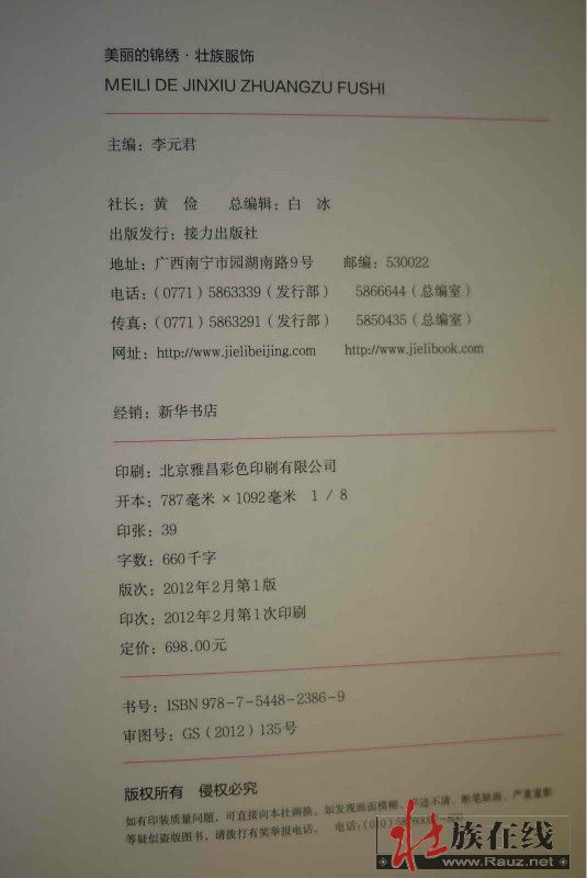 我(即梁老师)的影像记录三部曲之二——《美丽的锦绣——壮族服饰》画册(精装8开本,300页码)由接力出版社和雅昌集团旗下的北京东方集雅图书有限责任公司出版了,刚刚拿到一本散发油墨香味的样书。今天是“三八妇女节”,作者梁汉昌特将无限的感恩和崇高的敬意献给书中所有的伟大女性,以及两位特殊的女性:这本书的主编、著名出版家李元君女士和我的 爱妻赖美宁,还有许许多多支持我的女性,因为有了你们,才使得这本书面世。谢谢你们,衷心祝愿你们青春不老,健康快乐!