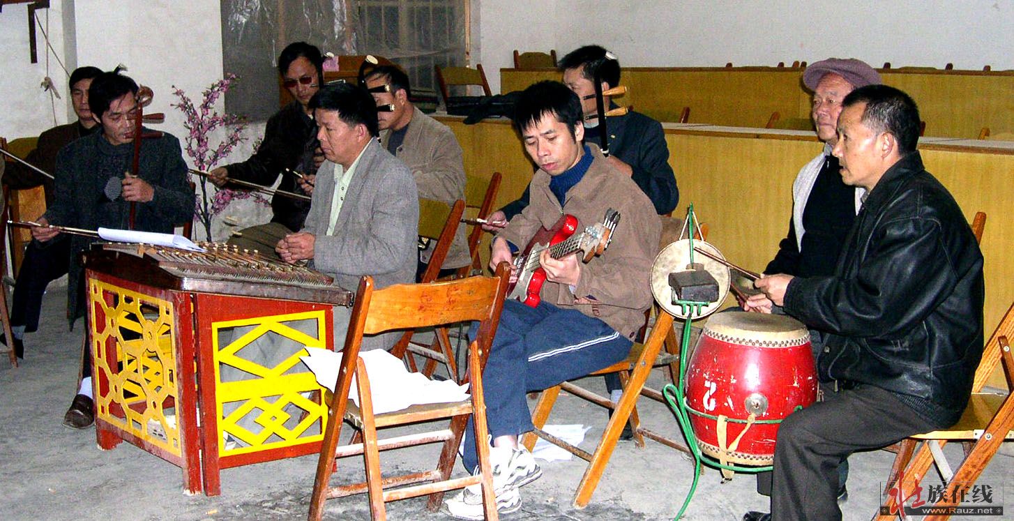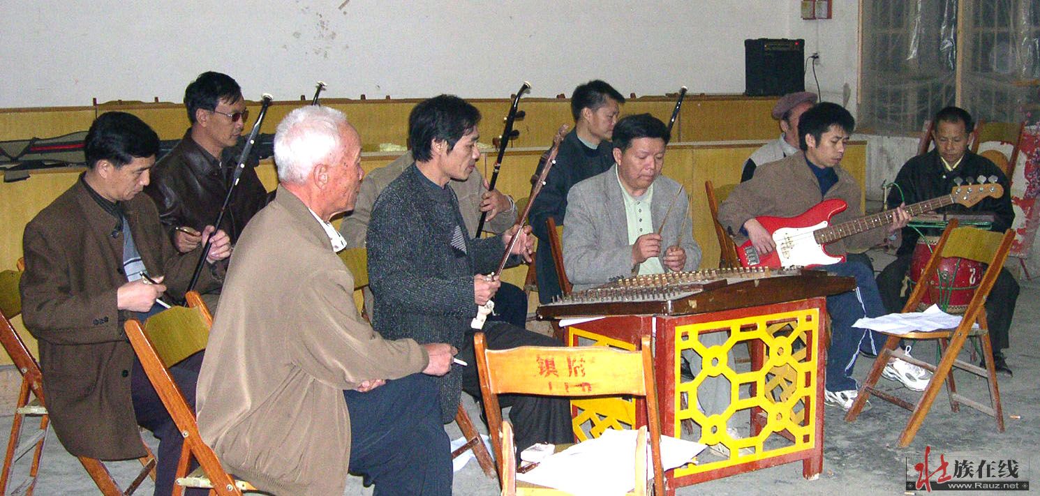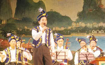 天保壮剧团于2005春节德保靖西贝侬歌会上的大型壮剧器乐合奏表演
