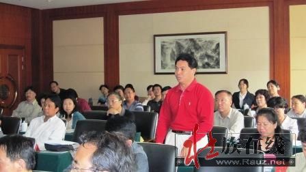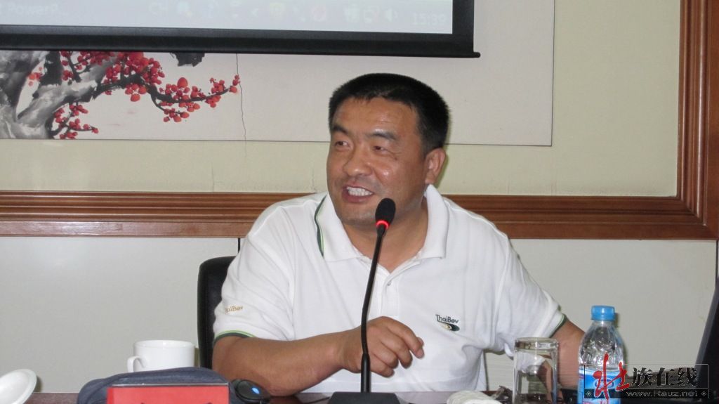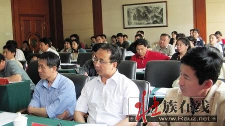 国家民委教科司语文处处长李旭练(壮族)在向各族学员征求办班意见。