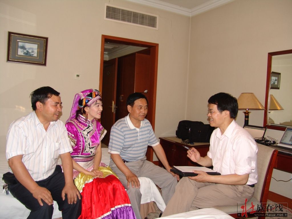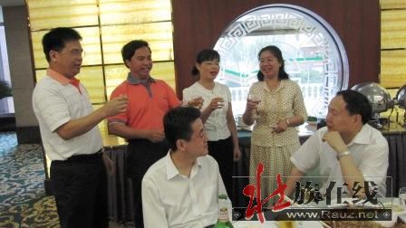 国家民委主管民语工作吴副主任(右)正在听壮族学员唱敬酒歌。.