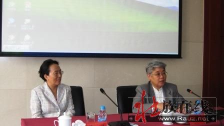曾任毛主席的翻译的唐闻声翻译家(右)在授课。左为国家民委教科司司长俸 兰在主持讲座。这位女士又是一位广西老乡哦。.