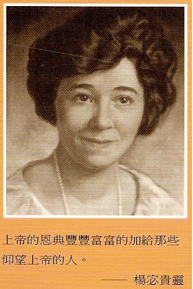 杨宓贵灵是爱尔兰裔的加拿大人,出生于多伦多,她后来取的中文名字,宓是娘家的姓(Miller),嫁给美国人杨志英(John Kuhn),所以冠夫姓成为杨宓贵灵。至于Kuhn为什么不采音译而姓孔或姓康,却成为姓杨,我想这就是使徒保罗所说的,“向什么样的人,就作什么样的人"的原则,因为栗僳人中姓杨的很普遍,所以“向姓杨的人,就作姓杨的人"。另一个来到大峡谷的宣教士杨思慧(Allyn Cooke)也一样,明明可以取姓古或姓柯等近音的字,他也宁可姓杨,因为他们都以姓杨为荣。