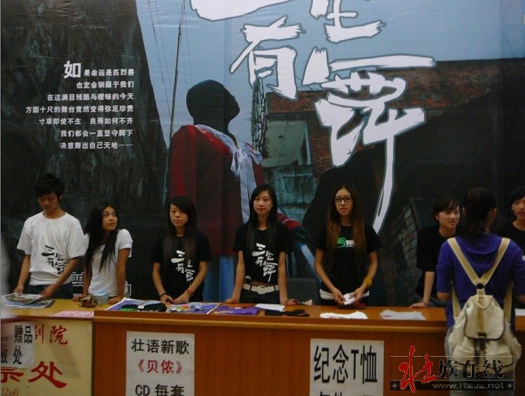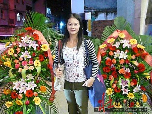 舞者之一、僚人家园的版主——蝶姬和壮族在线与北京梵天耀文化传播公司赠送的花篮。因为演出期间不能拍照,其它相片如有后再与大家分享。