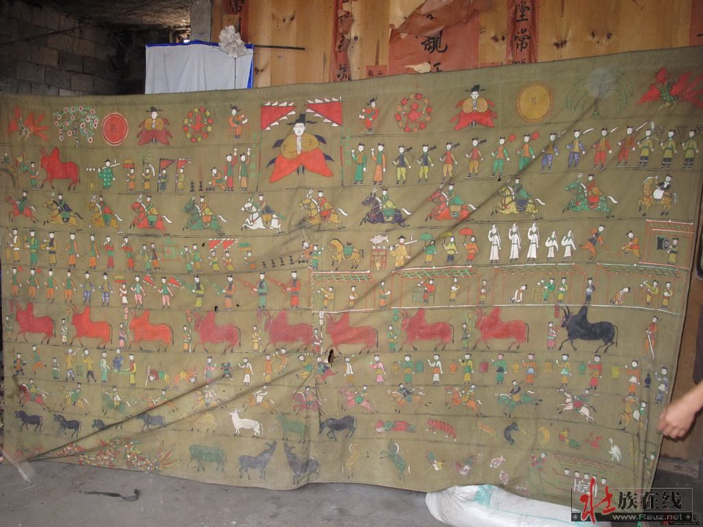 布依族传统丧葬用品——灵堂画。该灵堂画为冗乍寨罗氏共有,是当代作品。