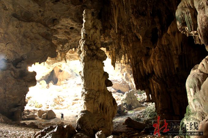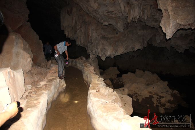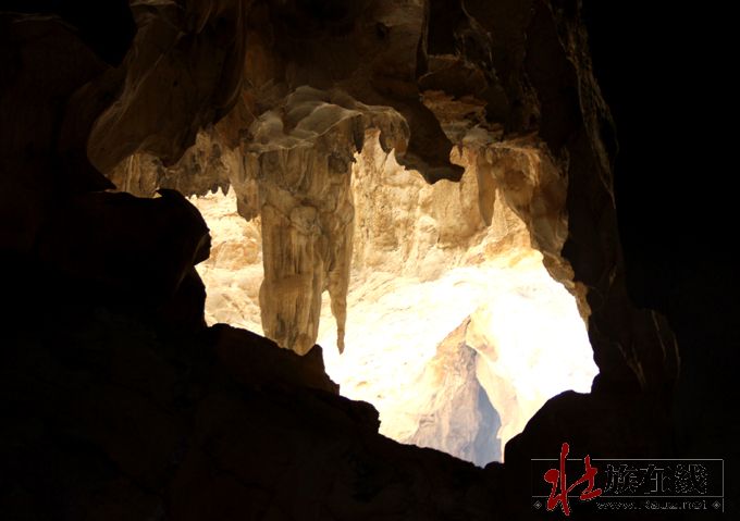 据《武缘图经》记载:敢洞山半开洞,内重重天然门户,下有流水足资邑注,上有小孔可通日光,能容千余人物,村人以为避寇之险要无比。清时武邑教谕受岳公常避寇于此,见其洞中颇有佳趣,因题有‘敢高从地起,洞古胜桃源’之句云。徒步深入天坑洞底观赏美仑美涣的钟乳奇观是一种休闲的乐趣。与骝驴洞相近的是敢洞,它贯通大山南北,洞内有深潭,洞外的水源之水穿过洞底,沿着洞底河床,由北向南窜过洞穴,出南洞口豁然开朗,良田美湖茶山呈现眼前,仿佛进入“世外桃源”。上世纪五十年代,达洞村人点火把在洞内修了两百多米长的洞中渠道,引水灌溉农田,这一景观至今仍保留着,为后人开发旅游提供了一段壮丽佳话。敢洞的南北岩洞口宽畅平坦,在其中摆上近百台的宴席、茶座,冬暖夏凉环境下休闲宴饮、听歌观舞,别有一番情调。因而引来了广西秋潮公司前来开发“龙山慧湖”。