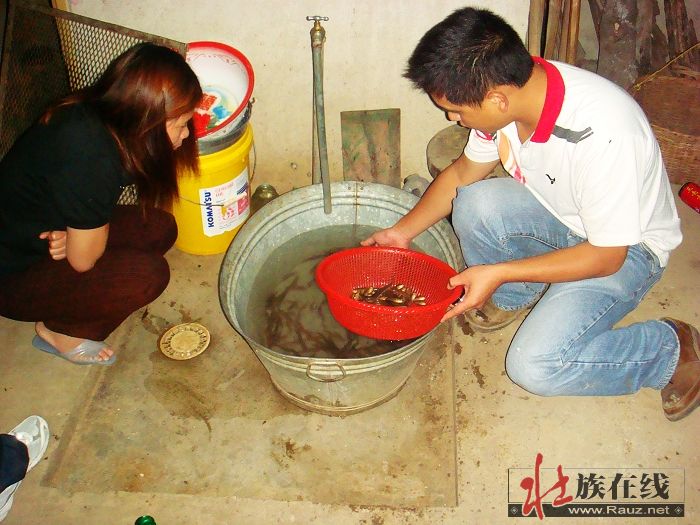 飞天的老家在靖西某村,一个泉眼处。最近由于我和Bill都喜欢上了中国斗鱼,尤其是壮家叉和壮家黑叉。其中壮家黑叉是越南黑叉的一个地方表现型,但在壮族地区已经非常罕见了。所以Bill叮嘱他在靖西湖润喜欢抓鱼的朋友,让他留意有没有黑叉,因为湖润正是靖西和越南接壤的乡镇之一,也有水路与越南相通。说到这,不得不说不光彩的事情,他朋友捉鱼的手段,正是我们最反对的电鱼。4月下旬的时候,他联系Bill说,他4月24日晚上在他们村子附近的泉眼处电得了100多条bya gaiz(壮语南部方言:叉尾斗鱼),特意留给Bill。这下子我们都傻了眼,100多条叉,而且都是电来的,在这样一个繁殖季节里,对当地的壮叉种群来说是多么大的一个打击啊。Bill在济南无法去检查这些叉当中有没有黑叉,于是,28日中午,我从德保到了靖西,拉上“猎人”(靖西在线网站站长),驱车前往湖润该村子找到Bill的朋友家,看到了这群叉,混杂在泥鳅、七星鱼等其他鱼当中。如下几图: