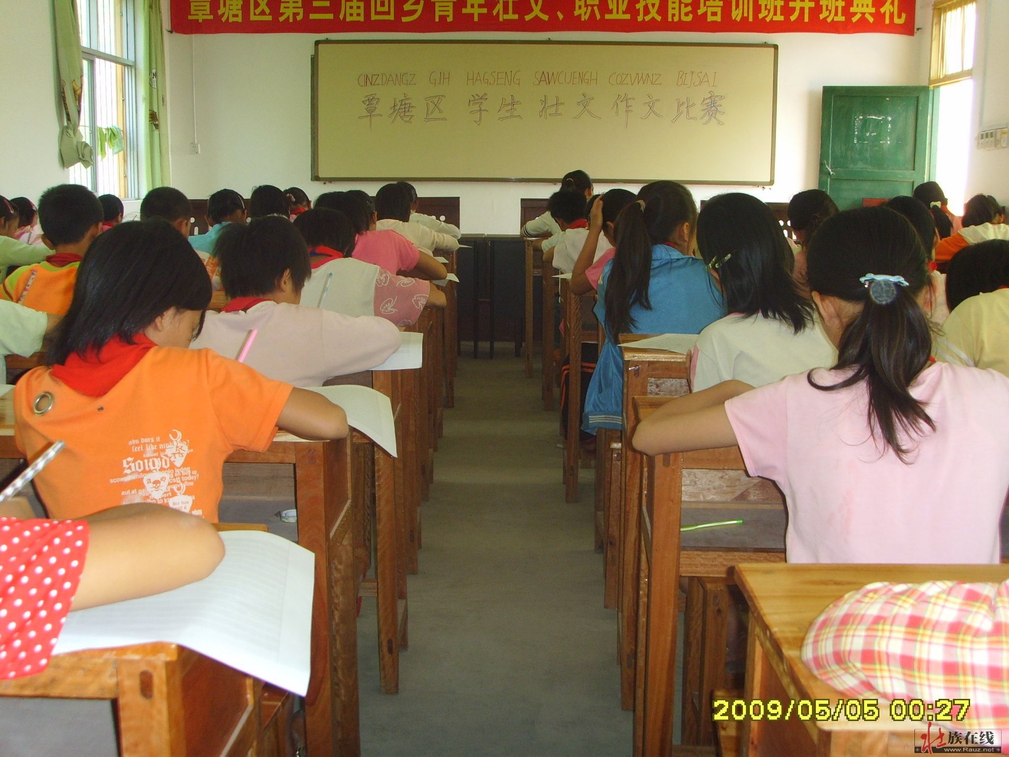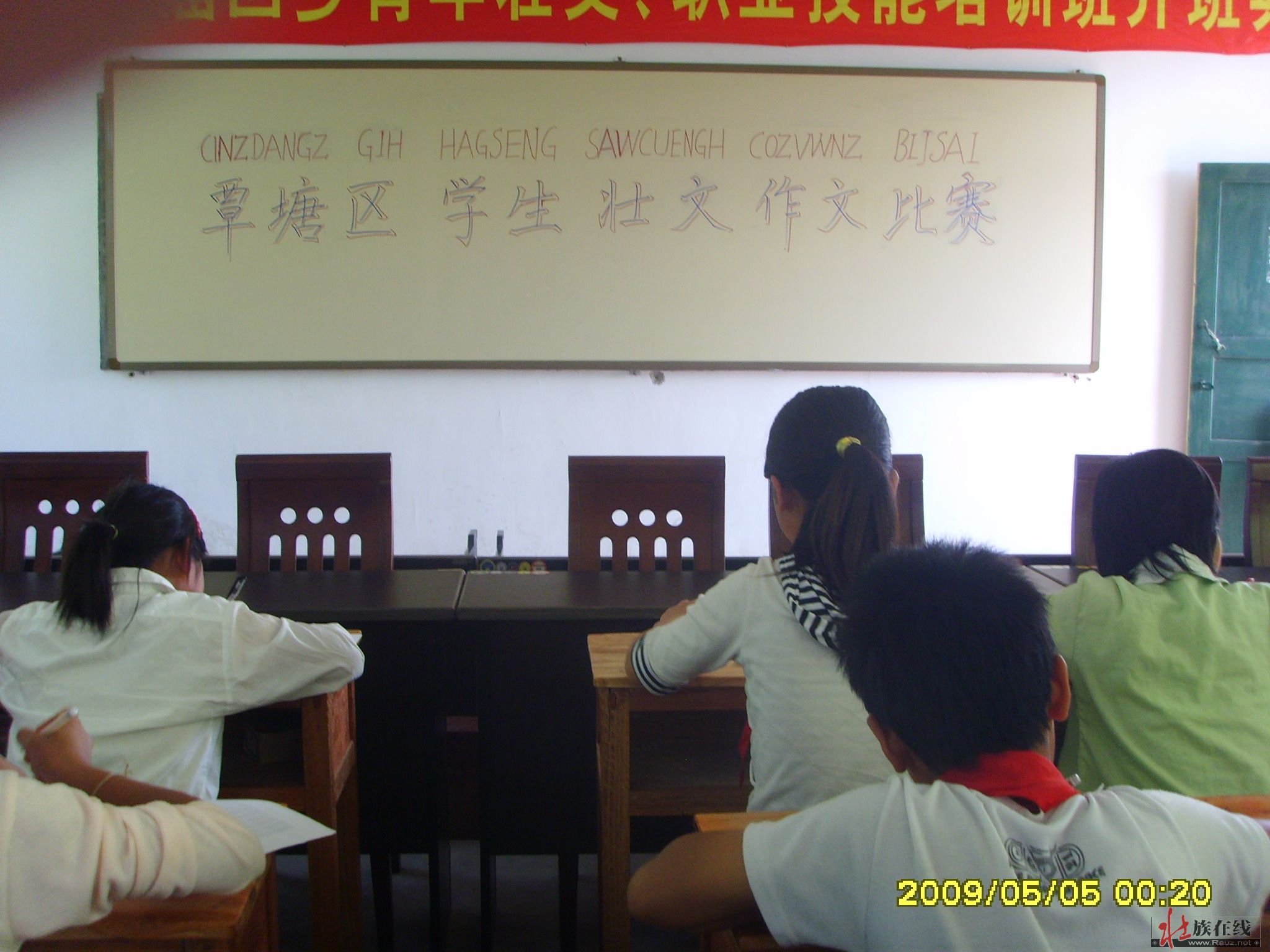 2009年5月31日,覃塘区举行了小学生壮文校准音朗读比赛