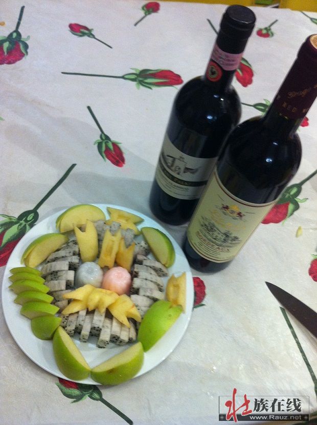 妮妮和秋秋真是完美女人,在厨房里忙呼了一阵端出一盘水果批盘。。。