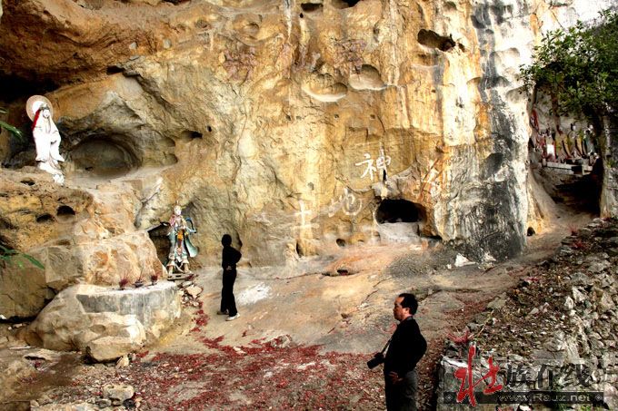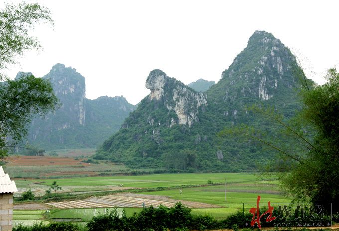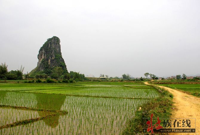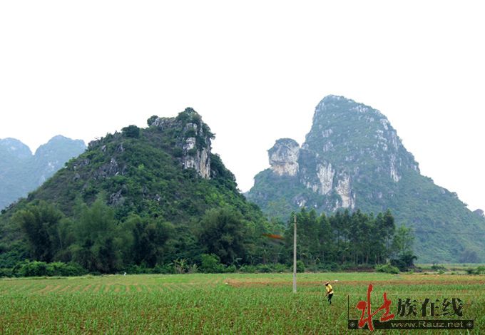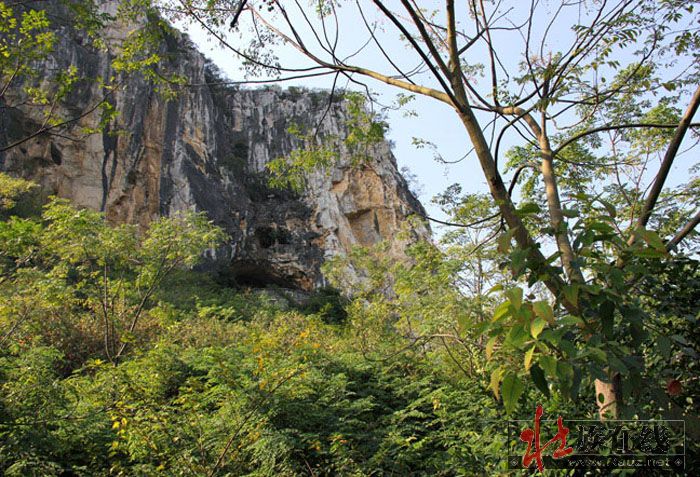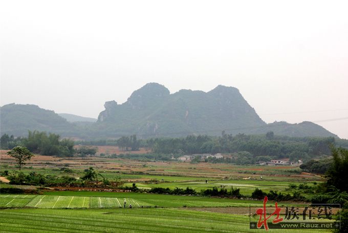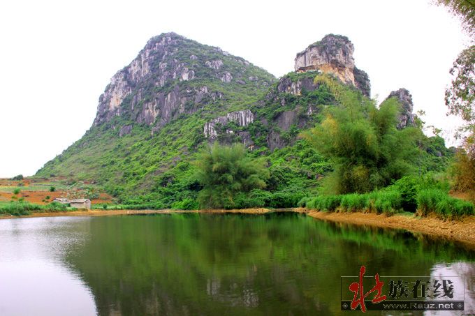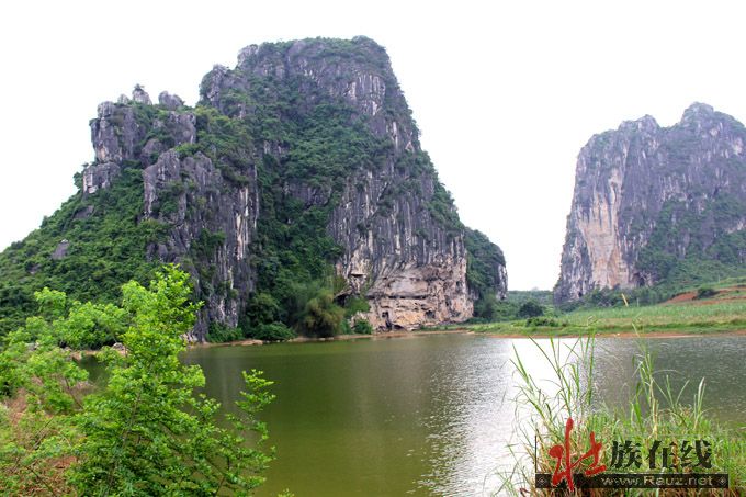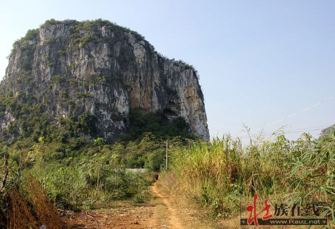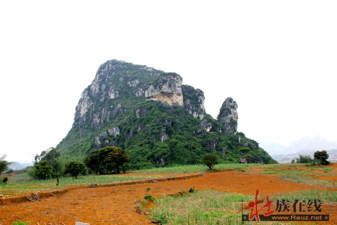 现在古郎山的确有地下究水溢出,形成小湖,阻隔东面来犯,其余三面都是石山,南北有两个山口,如天门中断,只在两道濠沟就可护城保国。那个猴王山是壮族先民崇拜的始祖神,那个石祖之象也称“郎”,即壮语“笋”的名称,最早应是夜郎国崇拜的“竹王”,后来成了王种“男根”石祖的象征,故有“越骆”为菌的解释。这里是否就是骆越文化的发源地,还需要专家进一步考察论证。