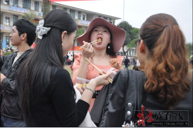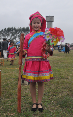 这可爱的女孩告诉我,她将参加歌舞{情满五色糯米饭}表演。到她的这个节目时,我寻找台上的她,发现台上每个女孩们的笑脸和她一样灿烂,跟她一样的可爱。