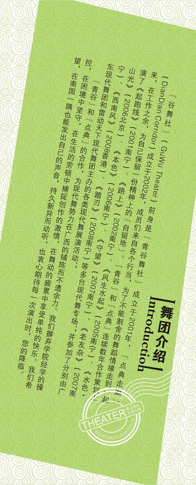 这里,只能把这套纪念书签的图片展示给大家,里面是两个舞团自创建以来的部分代表性剧目的展示,希望能有更多贝侬在日后的演出中,来多多关注和支持我们的行动!一起舞动僚乡!