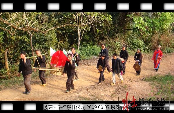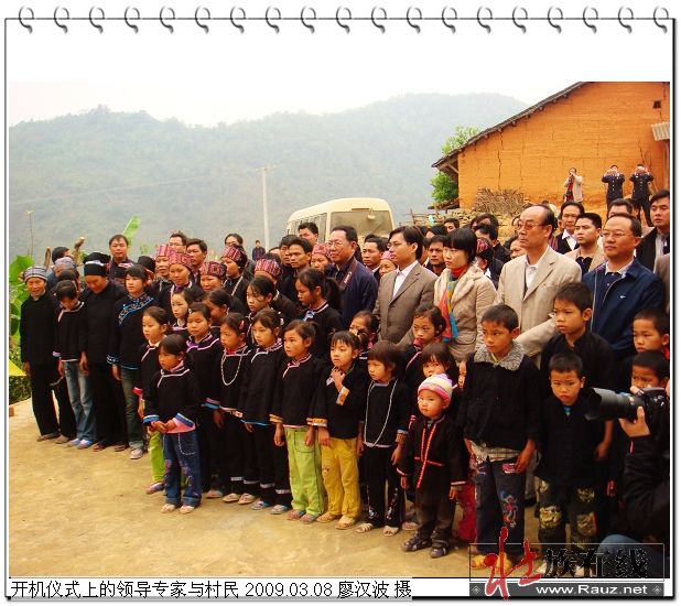 本站2009-03-10讯(红棉树)2009年3月7—9日,在云南省富宁县坡芽村隆重举行祭祀森林的仪式“祭滝节”之际,国务院新闻办公室五洲传播中心的摄制组一行6人亲自到访坡芽村,开始拍摄《中国富宁壮族坡芽歌书》纪录片,8日上午,云南省壮学会、文山州委州府、文山壮学会以及富宁县委县政府等领导、专家、学者以及云南文山、富宁等地的新闻媒体工作者一行百余人出席了开机仪式,壮族在线网站理事会一行3人也参加了这次祭祀仪式和开机仪式。