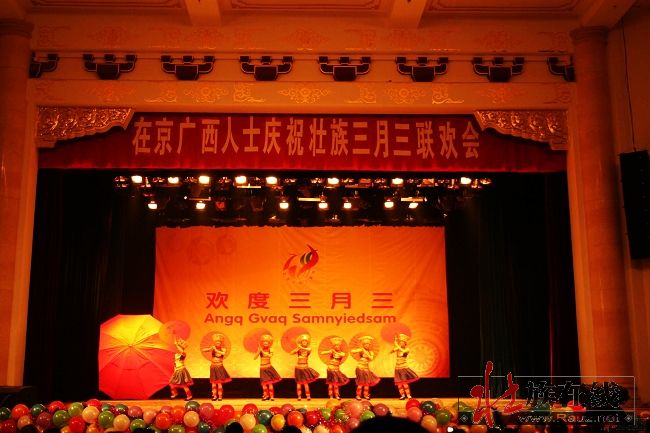 据悉,此前,三月三组委会还组织举办了一系列丰富多彩的节日欢庆活动。43日,组织500余名中央民族大学学生观看了在北京世纪剧院演出的广西融水原生态民俗风情歌舞剧《风从苗山来》。45日,组织北京各高校广西学子代表400余人参加了奥林匹克公园踏青活动。410日,举办在京广西学子三月三篮球赛、抛绣球、三人板鞋、趣味投篮等传统体育活动;当晚,中央民族大学原副校长、中国壮学研究专家梁庭望教授做了一场题为《辉煌的历史,灿烂的未来——三月三歌节与壮族历史文化》的学术讲座,引起强烈反响。