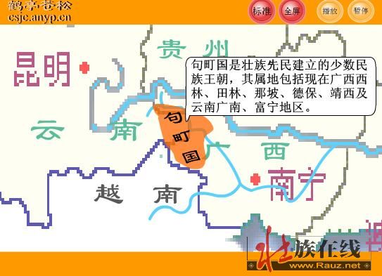 《汉书.西南夷两粤朝鲜传》记载:“汉昭帝始元元年(公元前86年),益州廉头、姑增反叛汉王朝,波及牂柯24邑三万人皆反,汉朝遣水衡都尉发兵进击牂柯郡,大破之。后三岁,姑缯、叶榆复反。遣水衡都尉吕群胡将郡兵击之。群胡不进,蛮夷遂杀益州太守乘胜与群胡战,士战及溺水死者四千余人”。次年,汉朝被迫更帅增兵,在句町侯亡波率领军民支持下,汉兵才打败了姑缯、叶榆。“句町候亡波,率其邑君长人民击反者,斩首捕虏有功,其立亡波为句町王。” 句町王常与军事实力雄厚的夜郎国争雄,并抗击汉兵的进攻。夜郎国虽然先兴起,但句町不隶属于夜郎,而是夜郎的邻国。两国各自凭借自己的兵力和国势,常互相争斗。对汉王朝派人来调解,句町王兴等不予理睬,同时把汉吏刻成木像立于道旁,然后用弓箭射之,进行污辱性的挑战,以示他们看不起汉兵,认为他们的军力足以同汉兵抗争。 句町国军队抗击王莽疯狂进攻达十年之久。西汉末年,王莽篡汉称帝,改变了过去的民族政策,无端贬句町为侯国,并予以打击。“王莽篡位,改汉制,贬句町王为侯王。王邯恨,柯大尹周钦诈杀邯,邯弟承攻杀钦,州郡击之不能服。”句町王侯邯先当王莽的牺牲品,其弟承为报兄仇而奋力攻杀钦,打败了周钦。后来,“三边”九县的邑君长人民支持句町王,构成以句町为首的民族集团,力量更加强大,屡次打败王莽大军。 “三边蛮夷愁扰,尽反复,杀益州大尹程漏莽遣平蛮将军冯茂、巴蜀、犍为吏士,赋敛取足于民,以击益州。出入三年,疾疫死者什七,巴蜀骚动。莽征茂还,诛之。”王莽“更遣宁始将军廉丹与庸部牧史熊,大发天水、陇西骑士,广汉、巴蜀、犍为吏民十万人,转输者合二十万人击之。始至,颇斩首数千。其后军粮前后不相及,士卒饥疫三岁余,死者数万。而粤蛮夷任贵亦杀太守枚根,自立为邛谷王。”对于王莽的进攻,“三边”九县顽强抵抗了三年,王莽屡战屡败,“死者数万”。直到新皇二年(公元21年),王莽又“屡遣国师和仲曹放助郭兴击句町,”但也未能征服句町,结果导致王莽下台。后来东汉王朝被迫恢复了句町王的尊贵称号。 社会经济发展,综合国力强大。壮族是较早开始稻作农业的民族之一,到了汉代,在桂东、桂中壮族地区的稻作农业已有很大的发展。这时候地域相连接的桂西句町国的农业已进入水稻农业。句町时期,旱稻农业很发达,平民是以旱谷为主食的。句町王禹以“入粟千斛”慰劳汉兵,“粟”即为旱谷。正因为句町王有充足的粮食储备,才能养活一支强大的军队,抗拒王莽二十万军队的十年进攻。普驮铜鼓葬出土的文物,从另一个侧面反映了句町养羊养鹿业的发达。在普驮铜鼓葬中出土的4件铜坐俑,头上戴有帽子,身上穿有衣裳,脚上穿有鞋;1件铜骑俑,马有鞍,骑士穿袍,这些反映当时家庭己有纺纱织布,缝制衣裳。铜鼓葬还出土了玉环5件、玛瑙环2件、玉管100余件,以及玛瑙串珠、绿松石珠和金丝等。数量多、做工精细,打磨得光滑圆润,反映当时句町国发达的经济水平和人民的富裕生活。 句町国地处南越、夜郎和滇国之间.是三大经济区域的枢纽地带,对沟通中原、岭南与西南地区的经济文化交流,起了很好的桥梁作用。就水路而言,可通过句町境内的文象水(驮娘江)、蒙水(西洋江)等经郁水(右江)抵达南越中心番禺(广州);或者从句町北境温水(南盘江)经牂柯江(红水河)抵达苍梧、番禺。通过这两条水道把岭南经句町同西南地区的经济文化联系起来。陆路交通方面,句町国是邻近的滇国、夜郎等西南夷与岭南各国交往的主要通道。中原王朝曾在西南夷地区修陆路,如“秦时常略通五尺道”。汉武帝又“发巴蜀卒治道,自陆道指牂柯江。”这些陆道经过句町附近,句町完全可以通过它们同邻近各地相联系。 青铜文化高度发达。句町古国还创造了高度发达的青铜文化,其中最有代表性的就是从西林县普驮村出土的铜棺墓葬和铜鼓墓葬。经专家鉴定,这两座墓葬都是距今二千多年的汉代句町王或王亲的墓葬。 普驮村出土的铜棺原在地下1.5米,棺长2米,宽0.66米,高0.68米,棺壁厚1.2~2厘米,净重约400公斤。铜棺表面印有云雷花纹,显示人物活动场面。棺板上还镶嵌铜铺首、铜面具等饰物。棺内有玉管、玉环、玛瑙串珠等陪葬品及骨憨炭屑等。陪葬品制作精美,显然出自工艺熟练的青铜作坊。普驮村铜鼓墓葬的墓坑为圆形,直径约1.5米,离地深约2米,墓口有一石板盖砖在石板下面并排放着十二块大小不等的石条,石板、石条均是已风化的石灰石,有加工痕迹。石条下面是四面铜鼓,内外各两面,两两互相套合作葬具。铜鼓内随葬品有铜骑俑、铜坐俑、铜马、铜铃、玉环等400余件。每件皆制作精美,巧夺天工。
